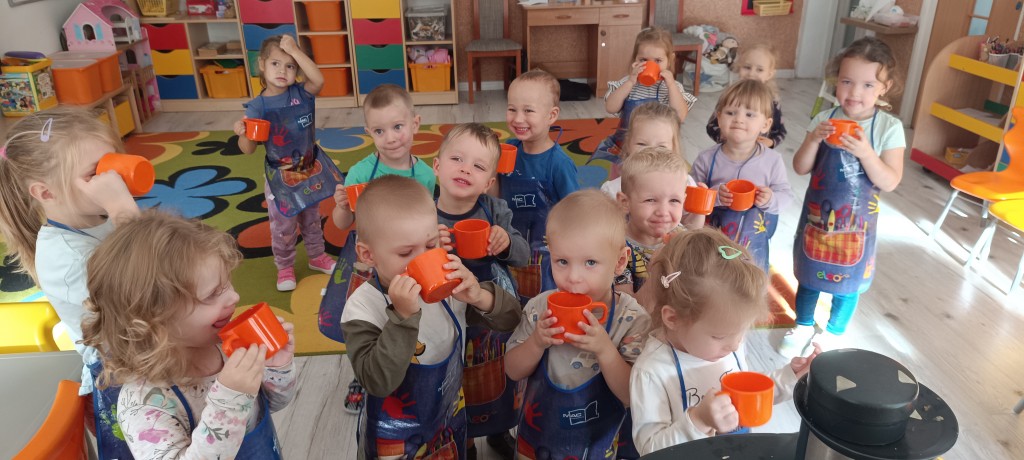 Dzieci z grupy 3-latków poznawały w ostatnich dniach dary jesieni. Szczególną uwagę poświęciliśmy owocom i warzywom – dzieci uczyły się ich nazw, kształtów, kolorów oraz zapachów. Rozmawialiśmy także o tym, jak ważne są one dla zdrowia. Podsumowaniem zajęć było wspólne przygotowanie soku owocowo-warzywnego. Dzieci z dużym zaangażowaniem wybierały składniki, obserwowały proces wyciskania soku, a na … Czytaj dalej