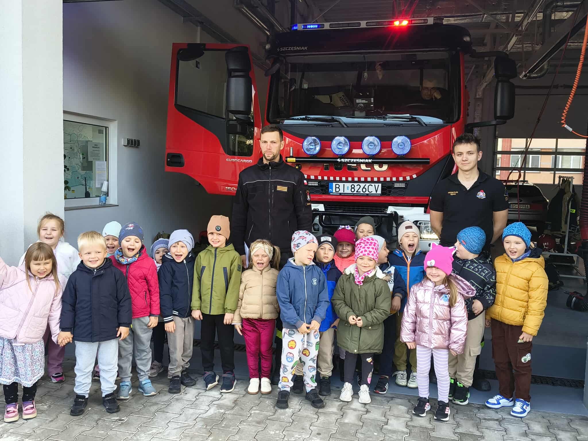 W poniedziałek Grupa Niebieska wybrała się do sali edukacyjnej Ognik w straży pożarnej. Zajęcia były bardzo ciekawe, ale najwięcej emocji wzbudziły wozy i sprzęty strażackie.