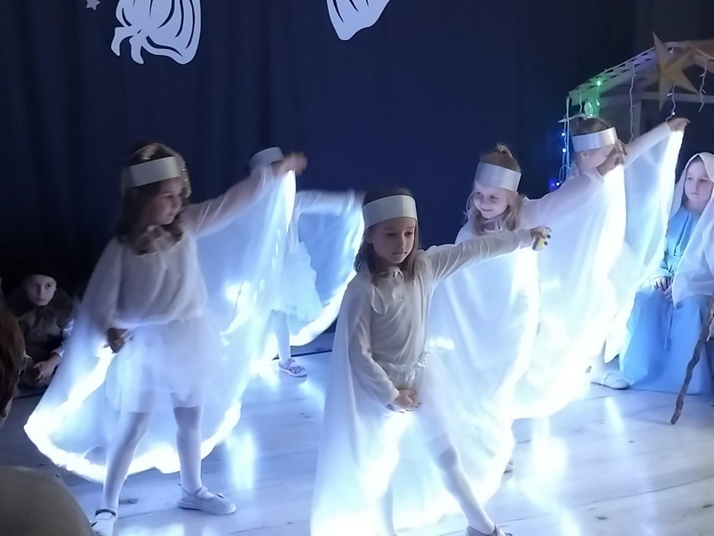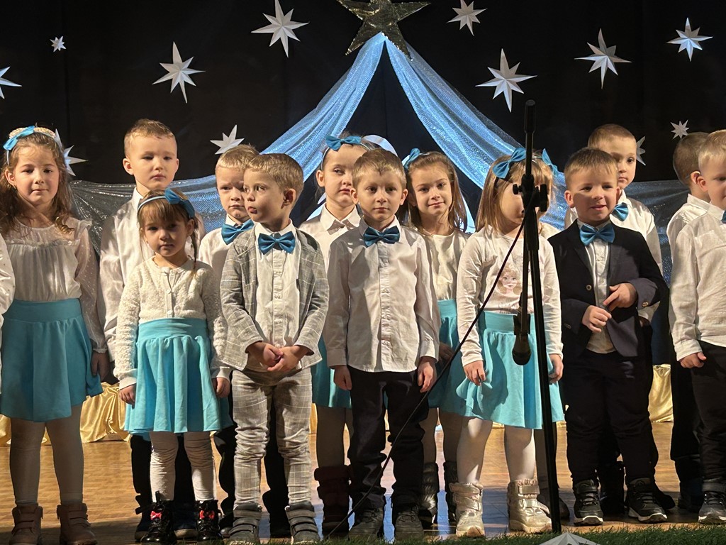 17 grudnia grupa Niebieska zaprosiła całe przedszkole do wspólnego przeżywania zbliżającego się Święta Bożego Narodzenia. Na zakończenie spotkania pani dyrektor Anna Eleksnin-Lachowska złożyła wszystkim świąteczne życzenia i małym aktorom wręczyła upominki. Po południu również Rodzice obejrzeli przedstawienie w wykonaniu swoich pociech.