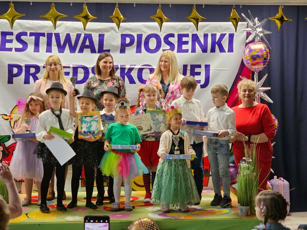 wysłuchało wszystkie zgłoszone utwory, oraz obejrzało wszystkie występy , zaprezentowane przez 35 uczestników festiwalu z suwalskich Przedszkoli.