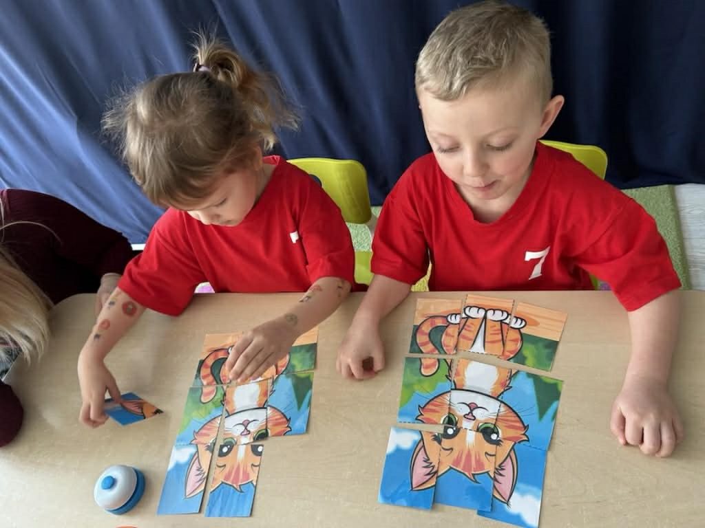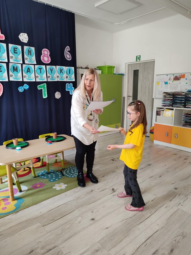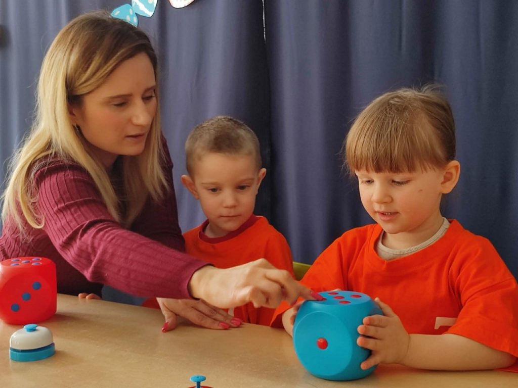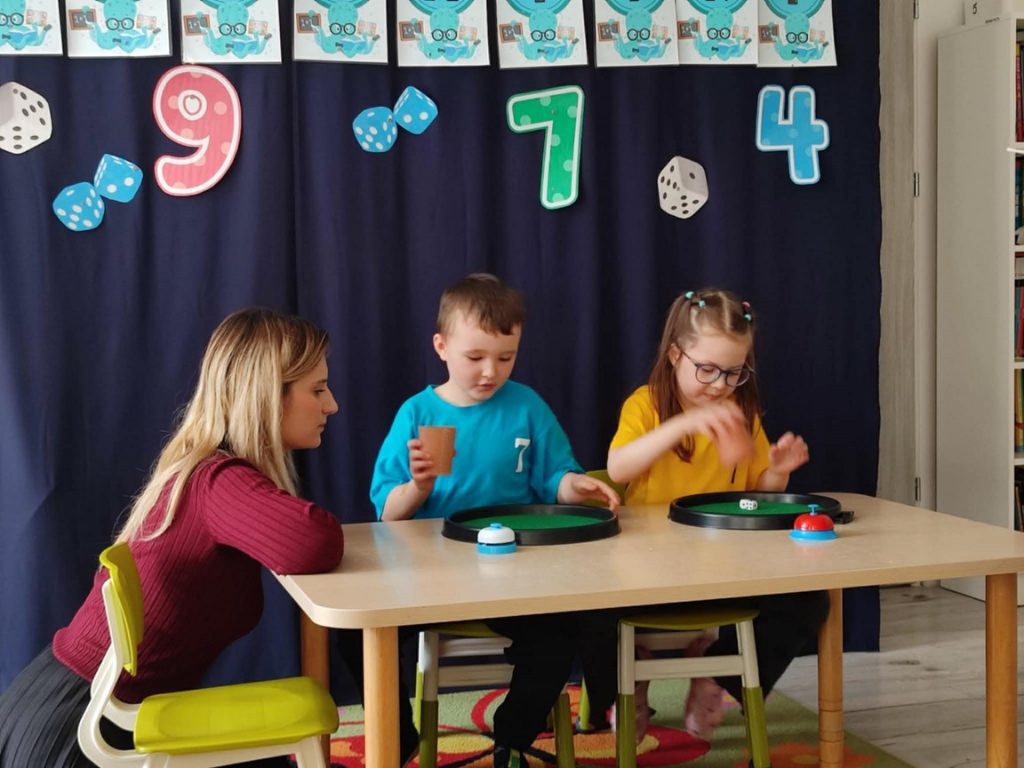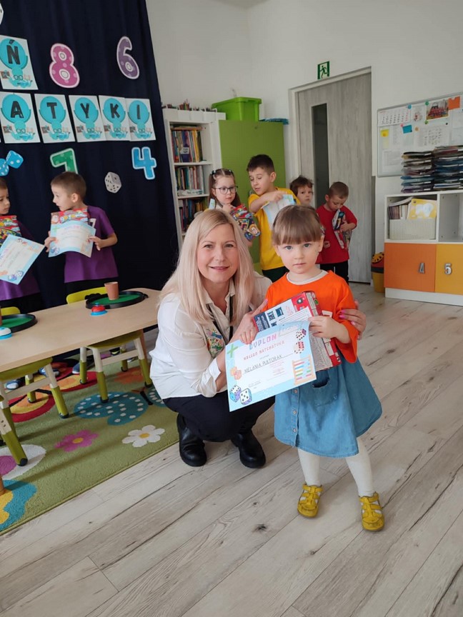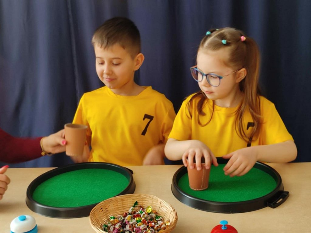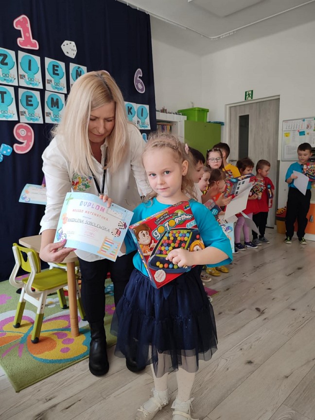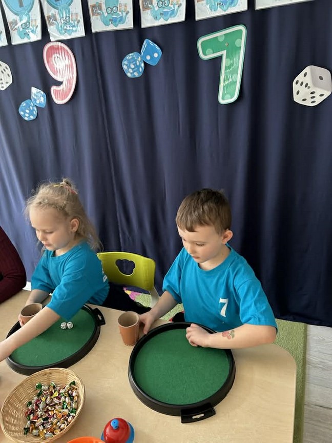 Dziś w naszym przedszkolu obchodziliśmy Dzień Matematyki. Z tej okazji odbył się konkurs matematyczny, w którym wzięli udział przedstawiciele każdej grupy. Dzieci bawiły się, dodając oczka na kostkach, a radość i zaangażowanie towarzyszyły wszystkim uczestnikom.