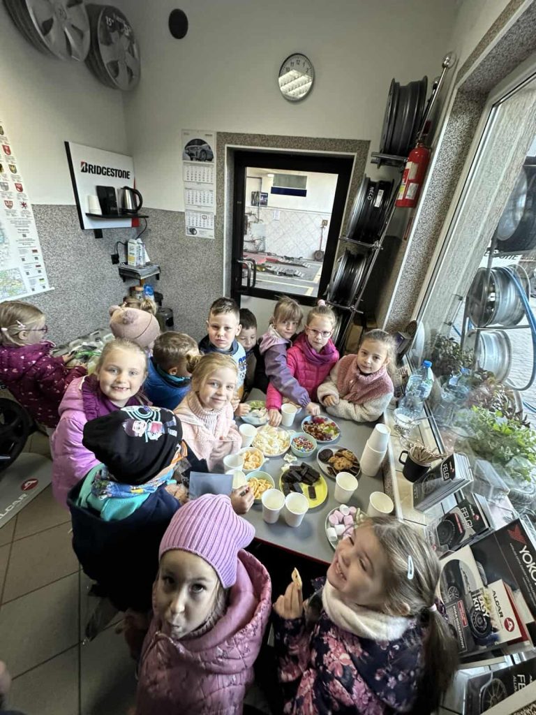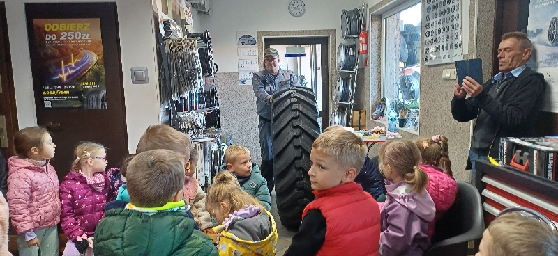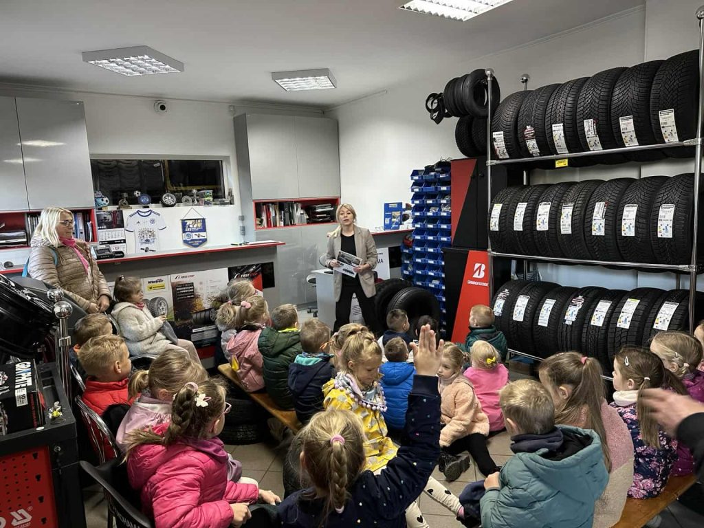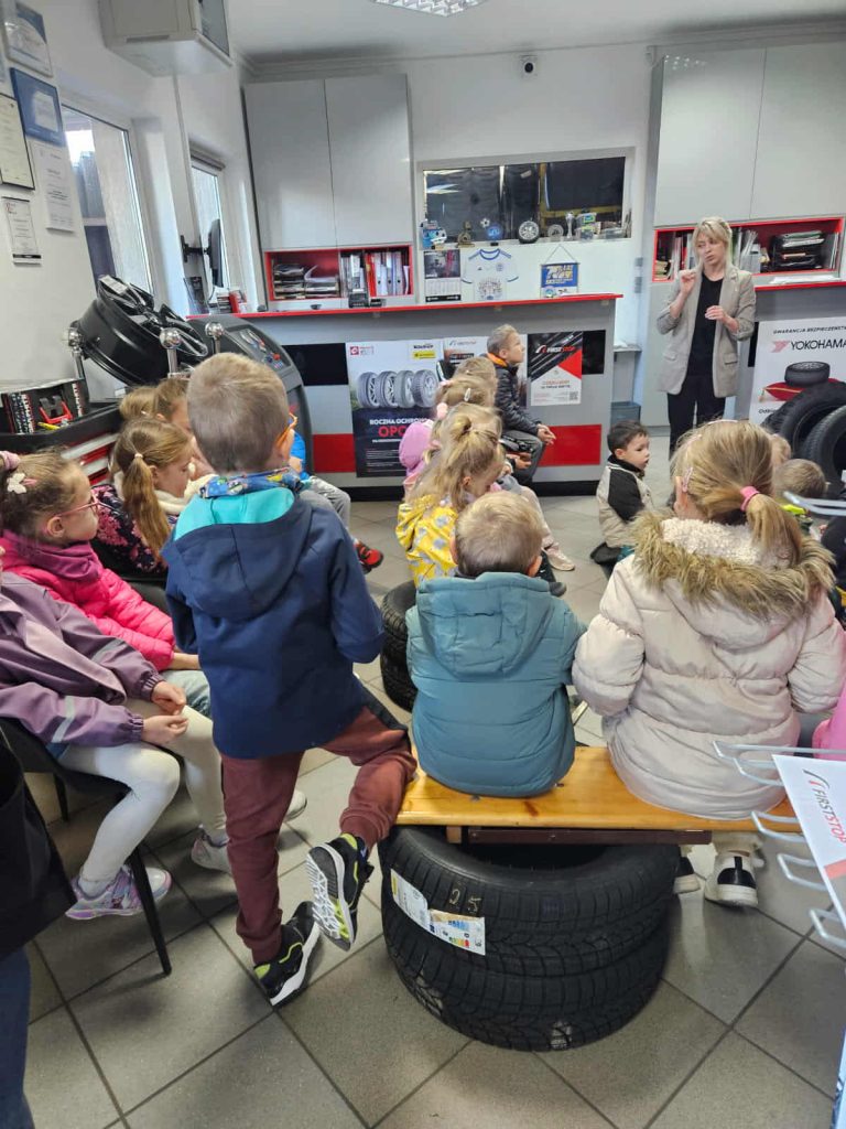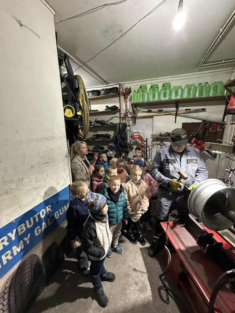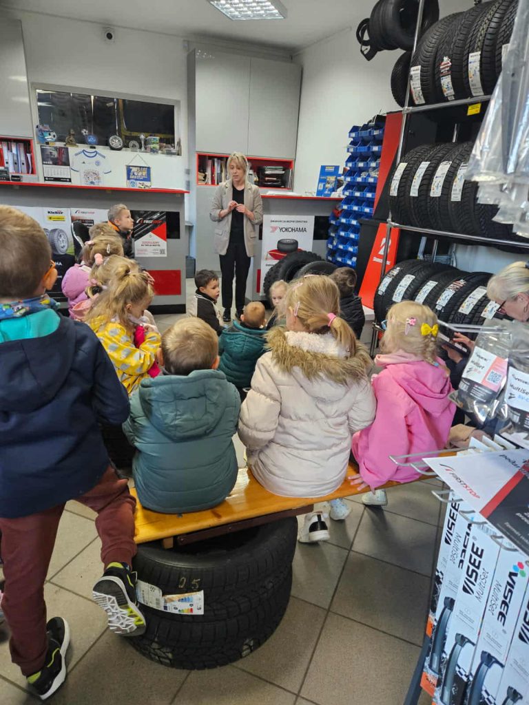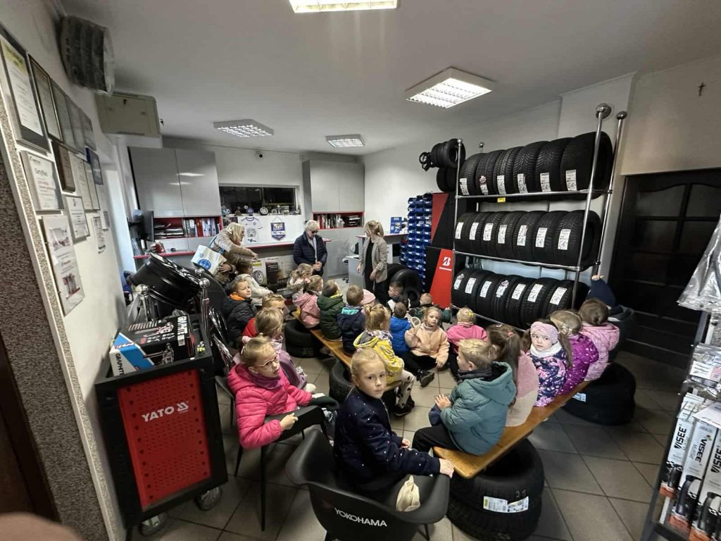 Z inicjatywy mamy i dziadków Kornela dzieci odwiedziły Zakład Wulkanizacji, który na terenie naszego miasta działa od 40 lat. Dzieci dowiedziały się dlaczego należy wymieniać opony przed okresem zimowym oraz miały okazję zobaczyć jak to się wykonuje. Dziękujemy za słodki poczęstunek oraz za wspaniałe prezenty od Zakładu Wulkanizacji.
