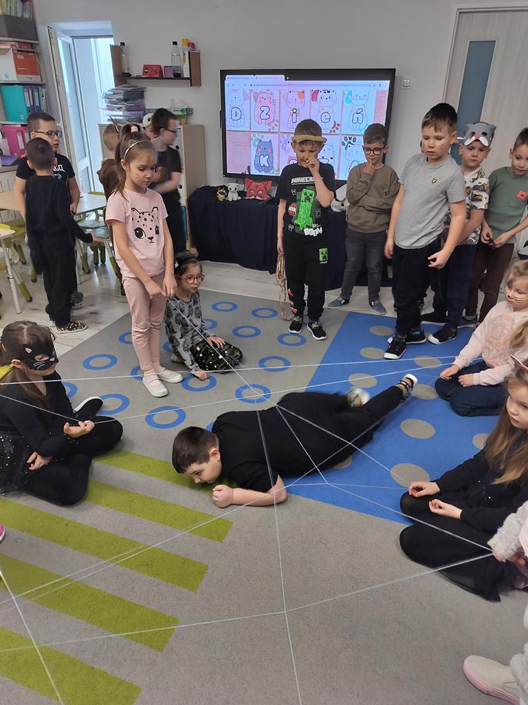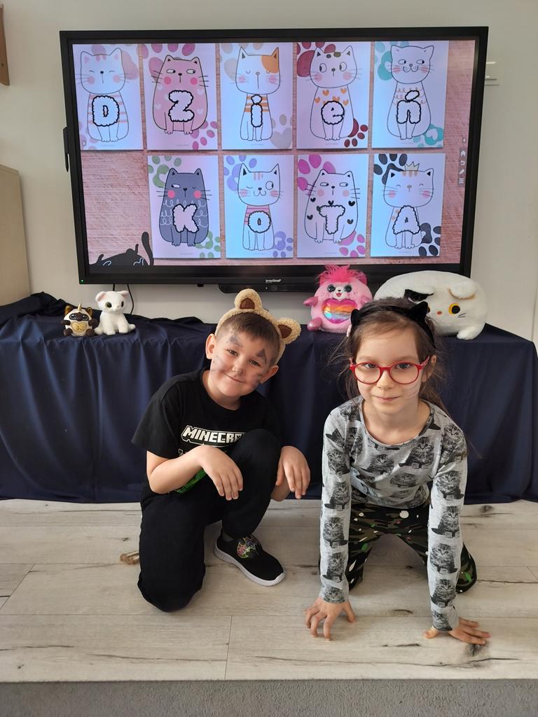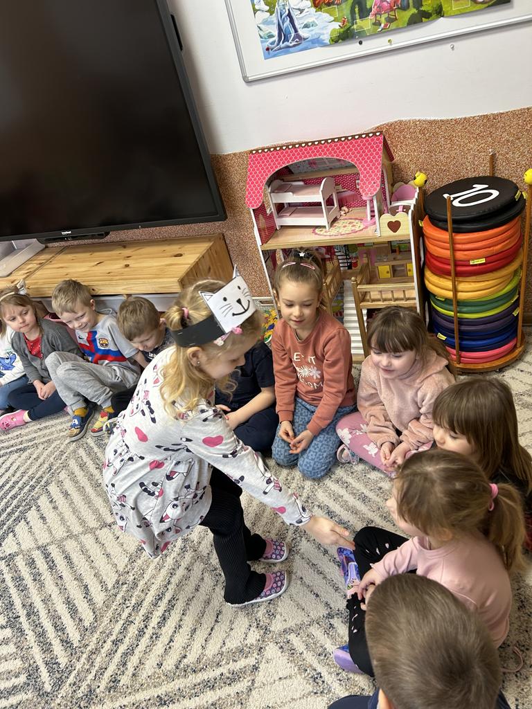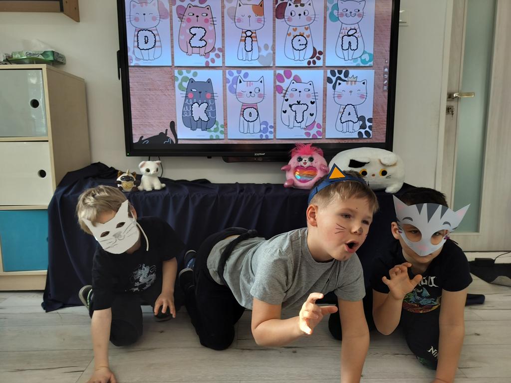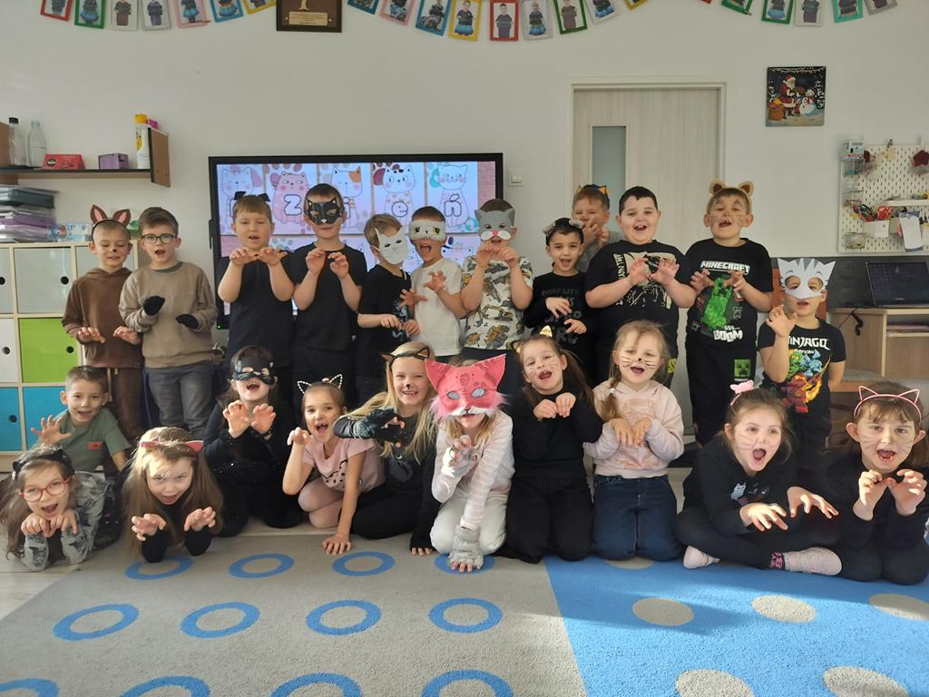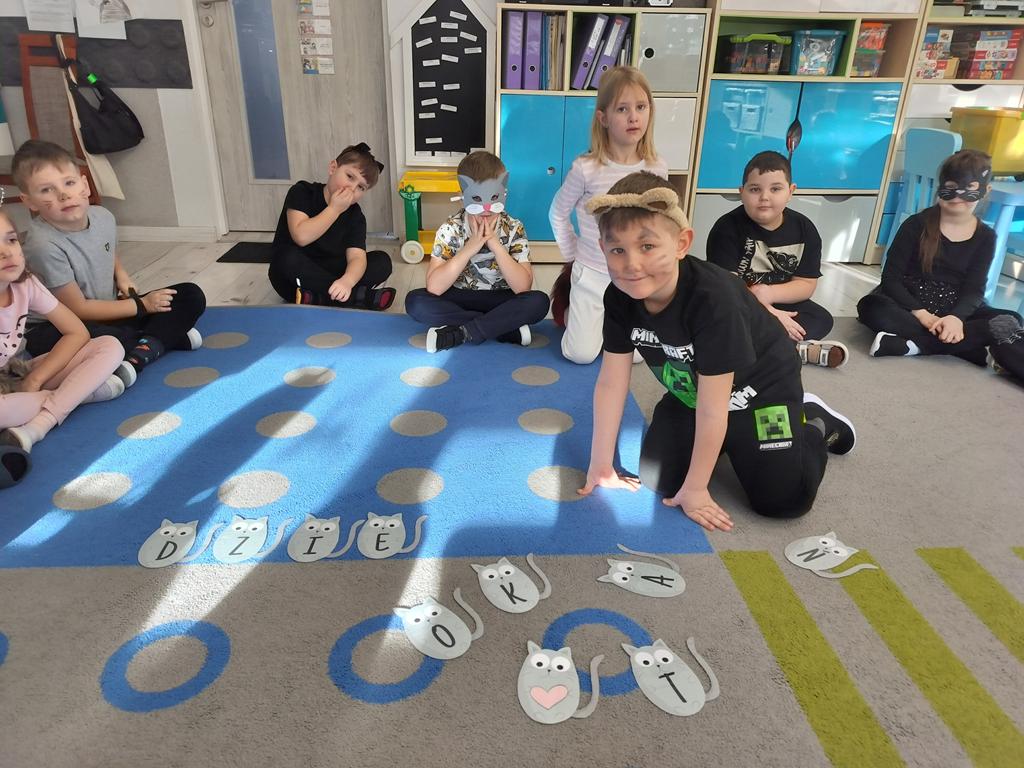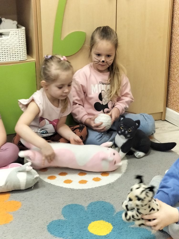 Wczoraj i dzisiaj obchodziliśmy Dzień Kota. Dzieci brały udział w zabawach sprawnościowych, takich jak „Koci tor przeszkód”, „Polowanie na myszkę” oraz zabawy ruchowe przy muzyce.