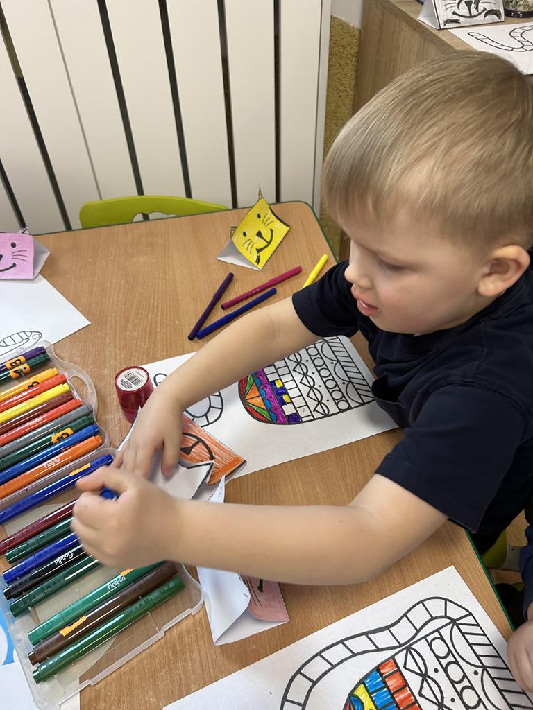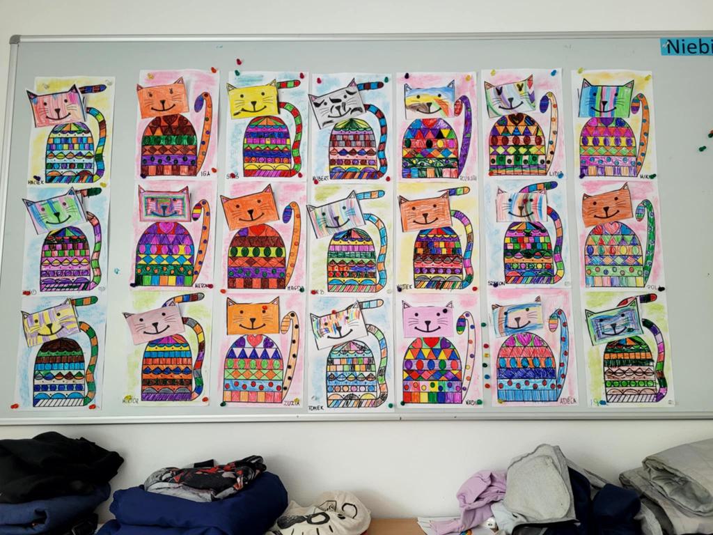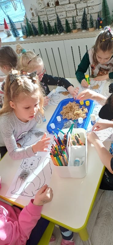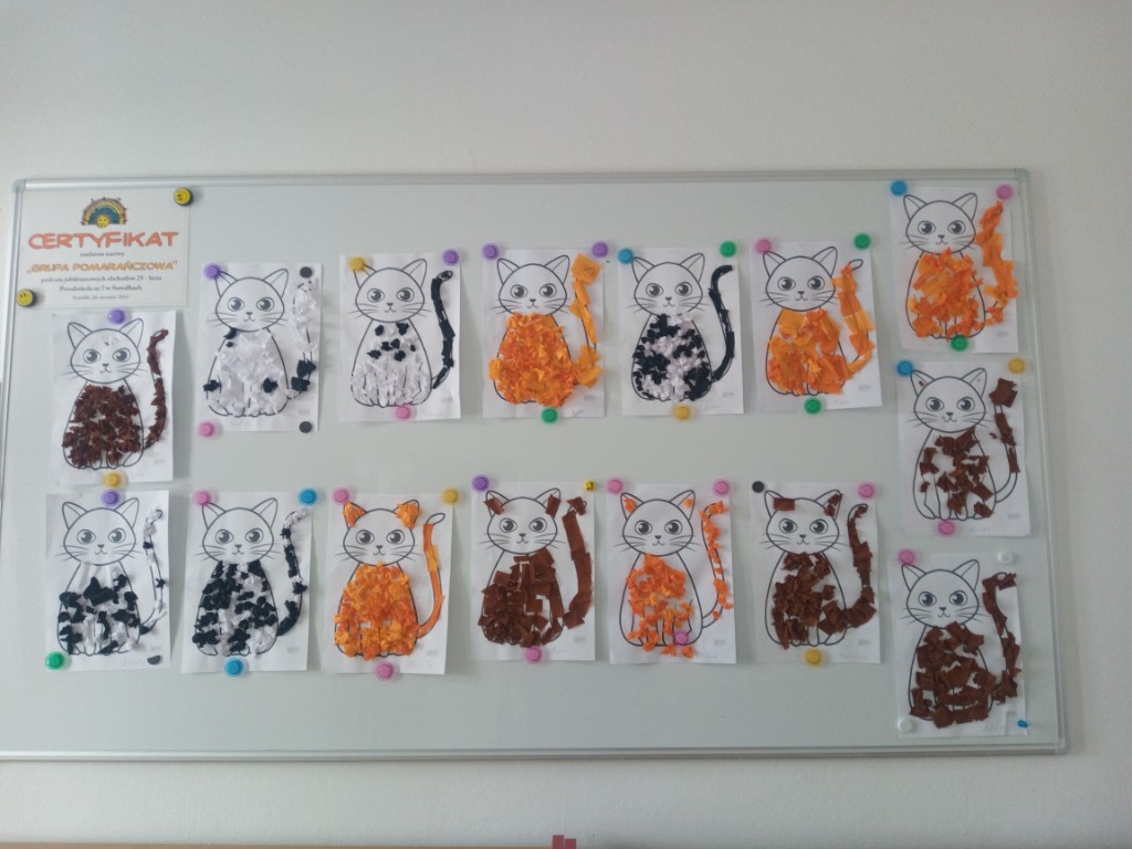 Na zakończenie wykonaliśmy pracę plastyczną – kolorowe kotki z papieru i gazet które ozdobiły naszą salę.