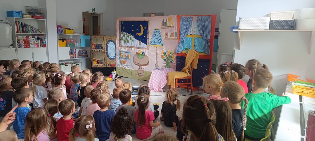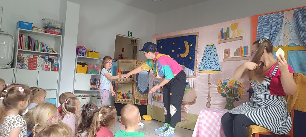 „Przepis na urodę”- teatrzyk 14 września, 2025 W piątek w naszym przedszkolu oglądaliśmy teatrzyk pt.,, Przepis na urodę” – bajeczka adaptacyjna w wykonaniu studia artystycznego ,,Pasja” z Białegostoku.