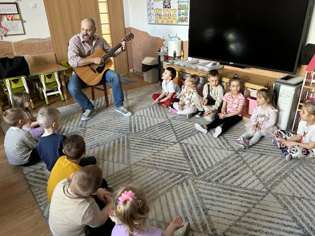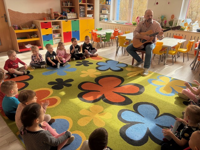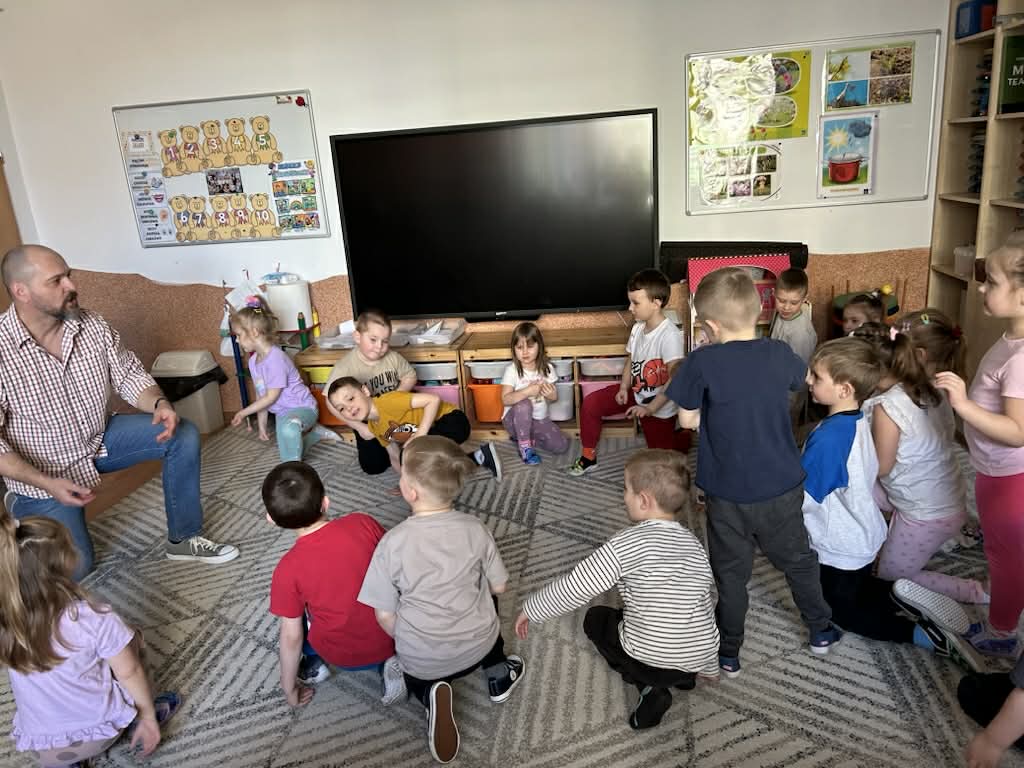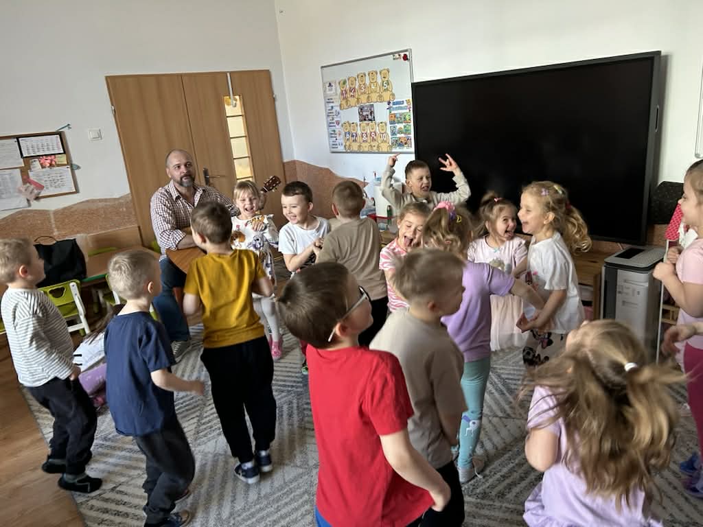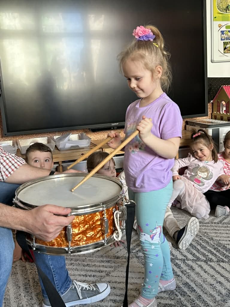 Zajęcia muzyczne 29 marca, 2026 Podczas zajęć muzycznych dzieci poznały nowy instrument perkusyjny – werbel. Przedszkolaki dowiedziały się jak jest zbudowany, w jaki sposób wydobywa się z niego dźwięk oraz gdzie można go usłyszeć.