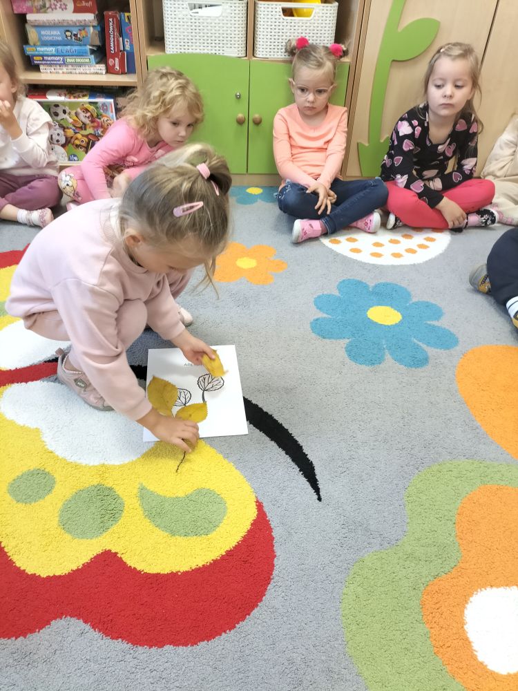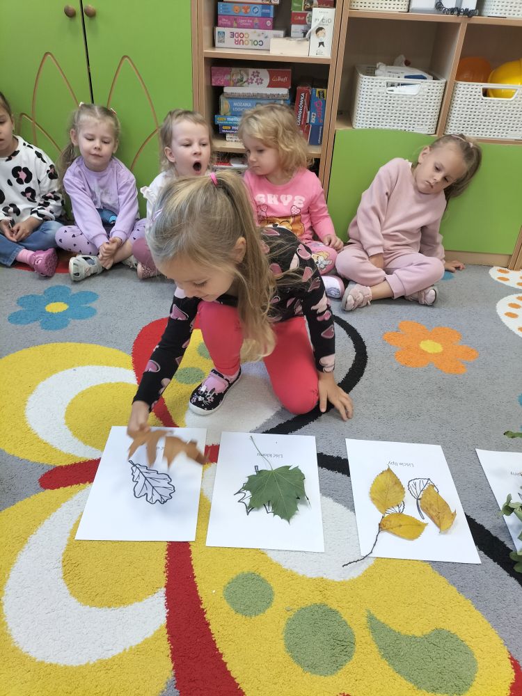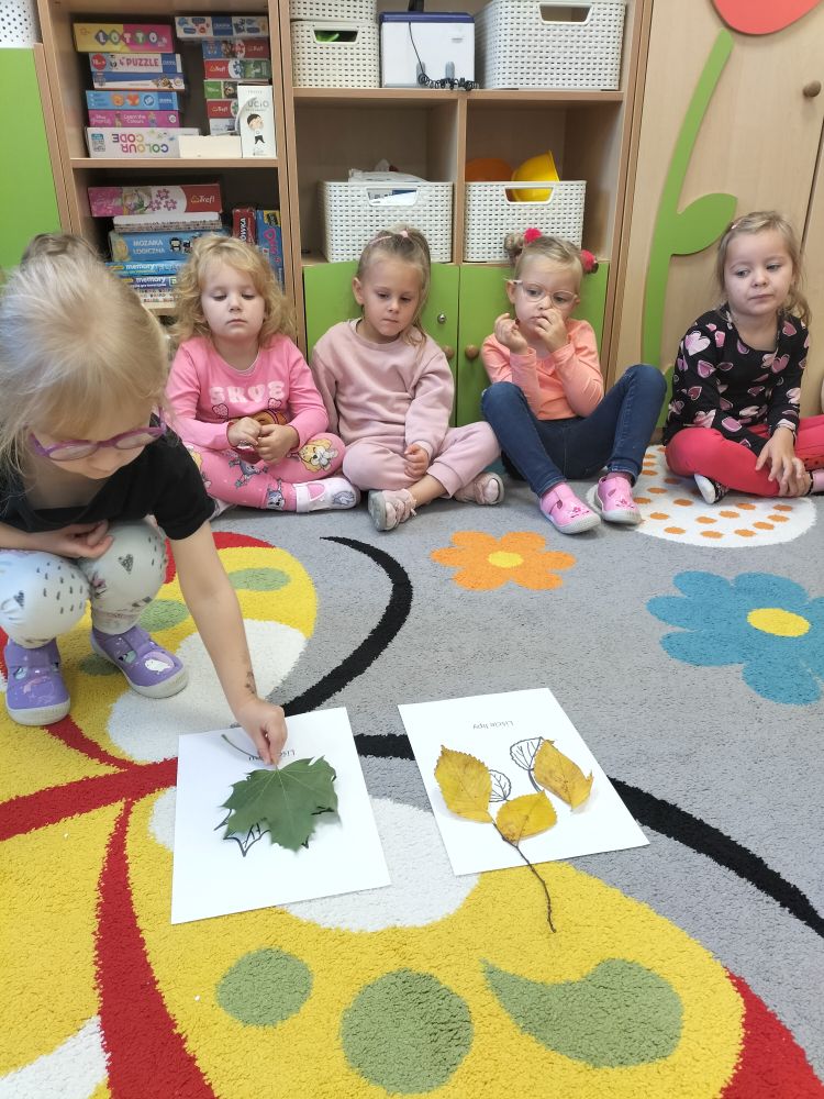 W tym tygodniu w naszej grupie dalej króluje Pani Jesień. Tym razem dzieci poznały jesienne drzewa.