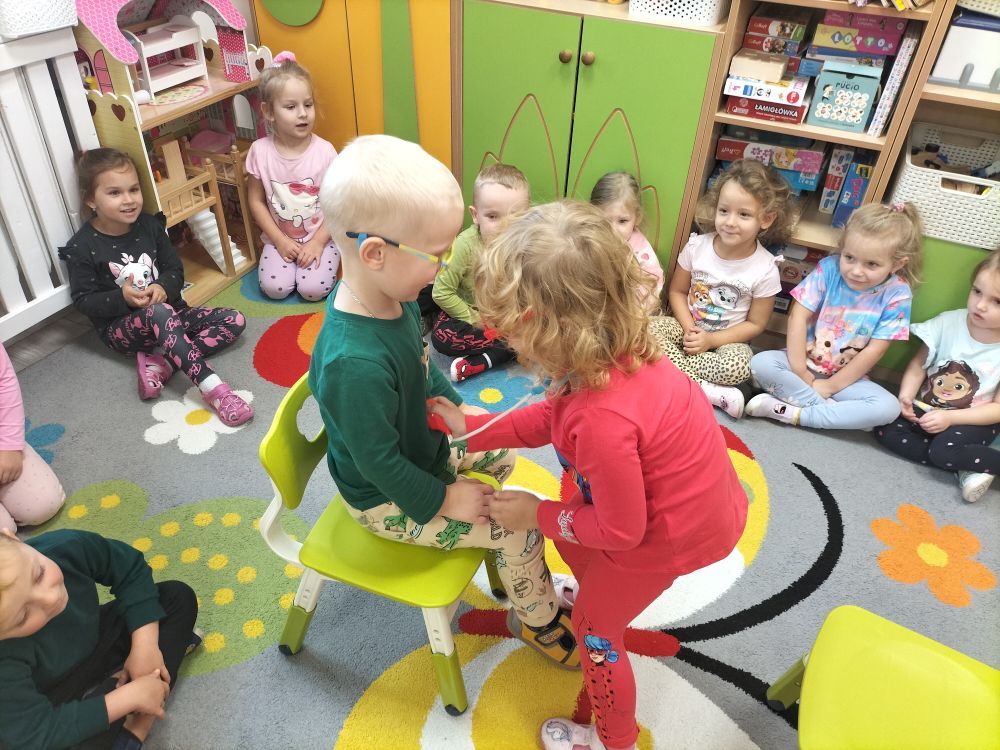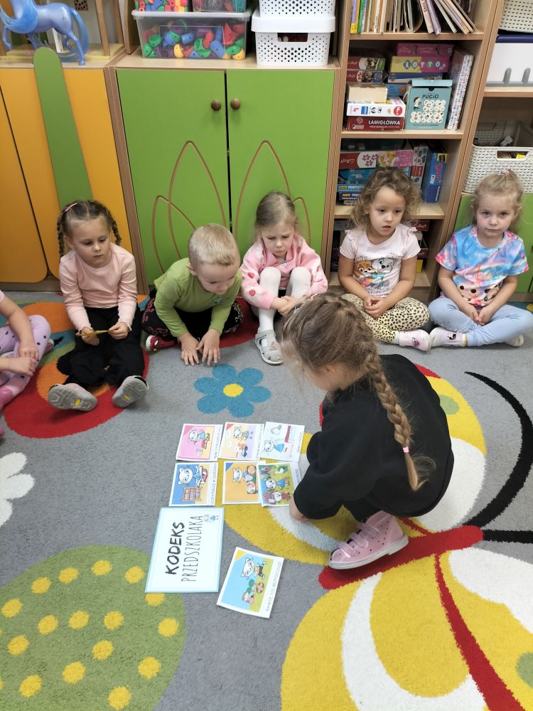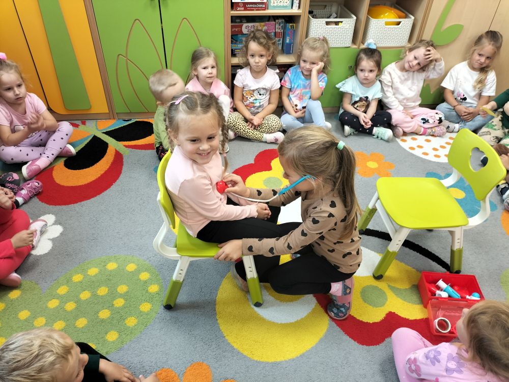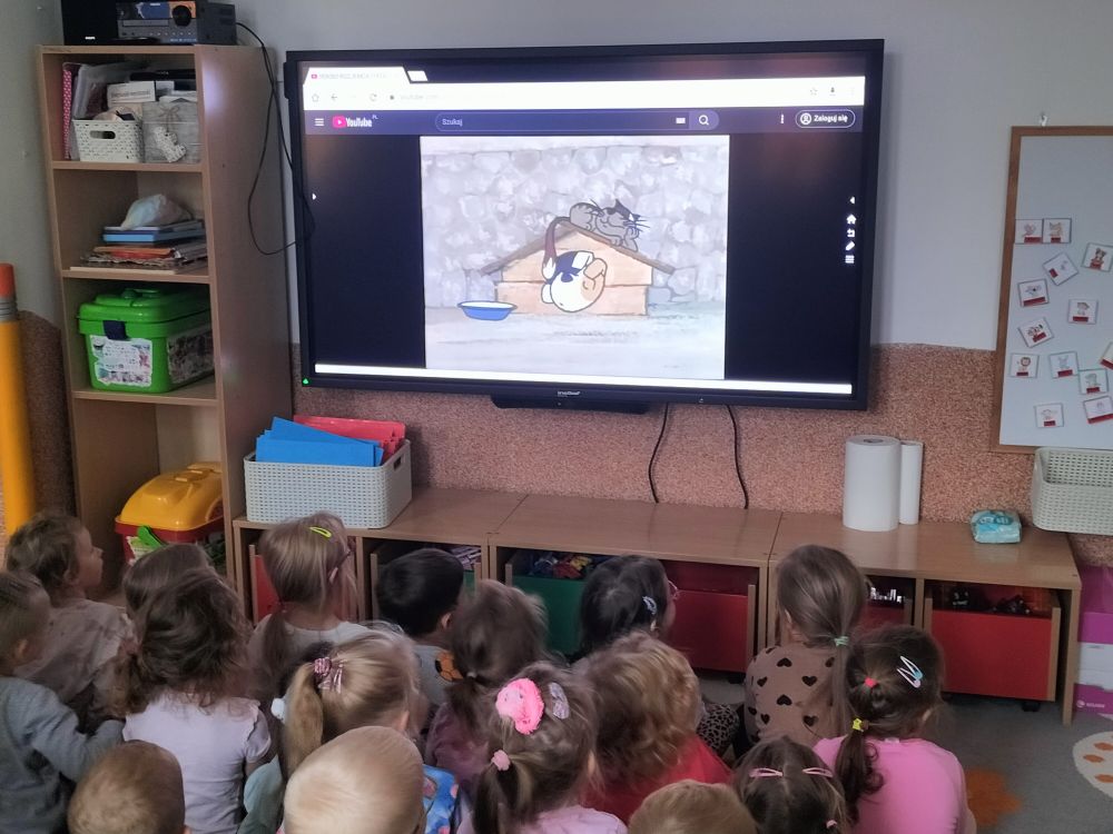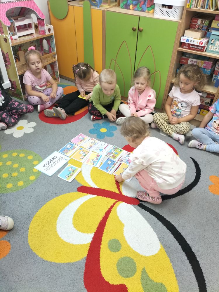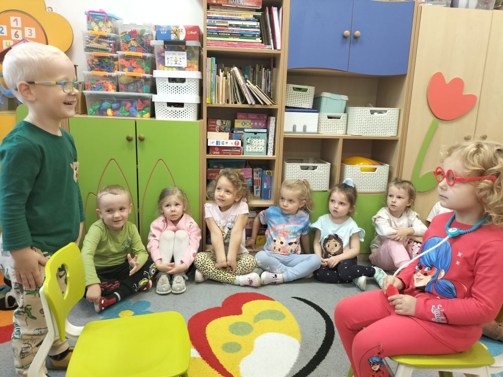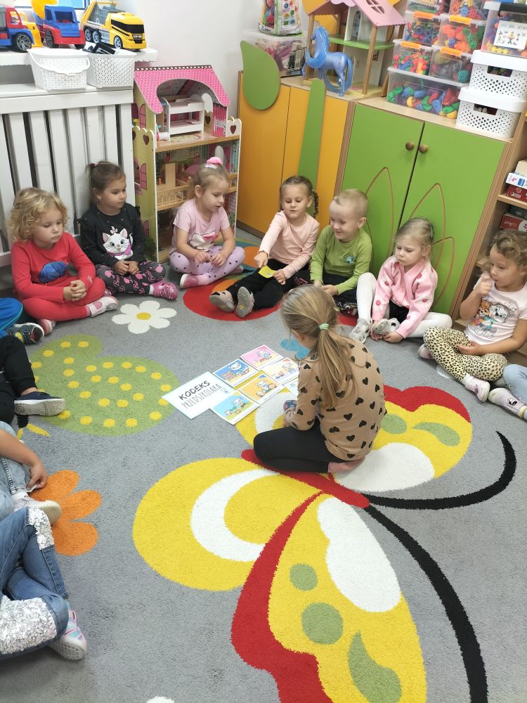 Przedszkolaki w ramach projektu „Magiczna moc bajek”- stworzyły Kodeks Przedszkolaka oraz odegrały scenki : z wizyta u lekarza, w sklepie oraz w restauracji. Następnie obejrzały bajkę „Reksio”.