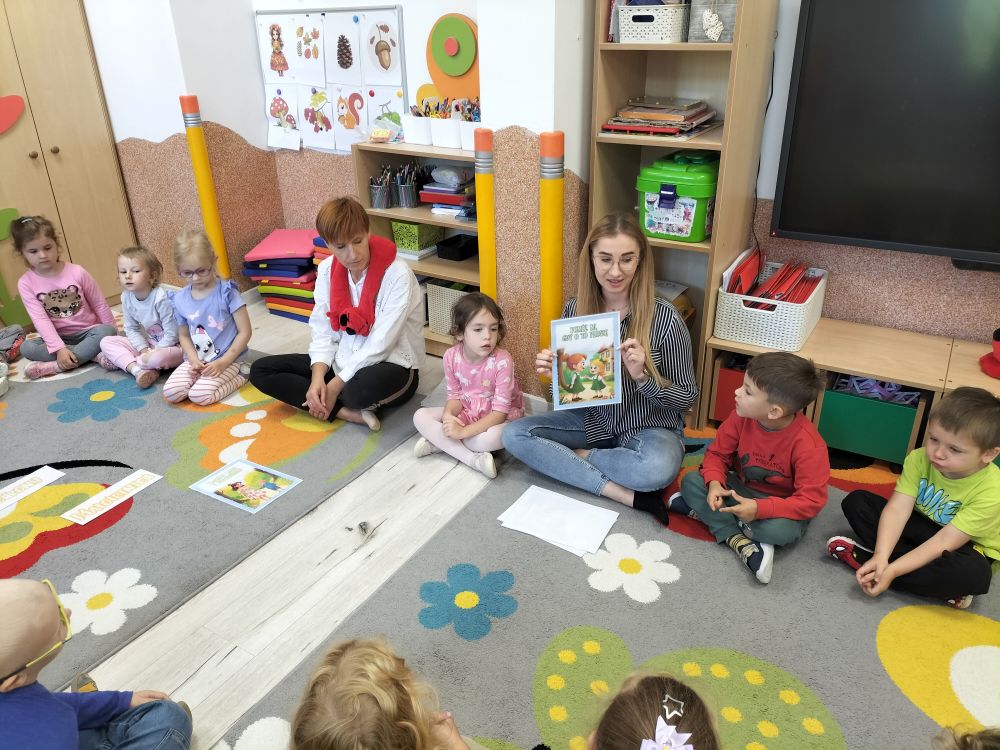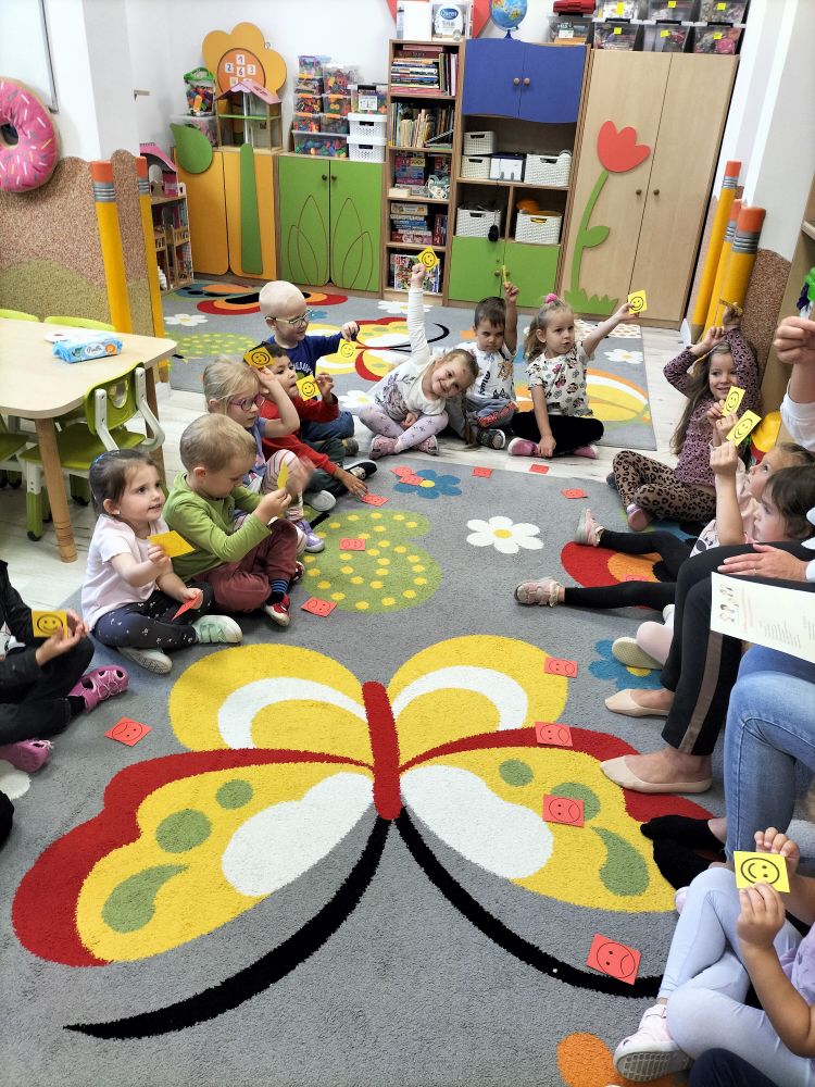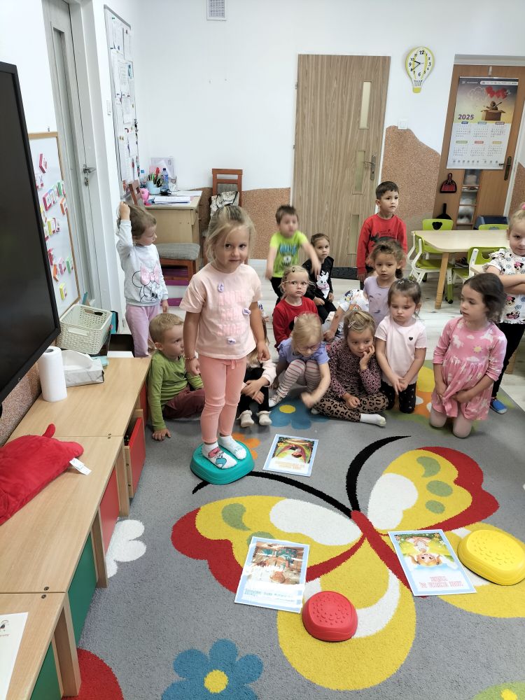 Na dzisiejszych zajęciach poruszyliśmy temat kształtowania odpowiednich postaw u dzieci. Poprzez bajkę „Gadki z psem , która w sposób przystępny i atrakcyjny ilustrowała wartości takie jak empatia, szacunek i odpowiedzialność. Dodatkowo kolorowe minki i kolorowe wyspy, pomogły rozpoznać różne sytuacje emocjonalne i społeczne. Dzieci w aktywny sposób przyswajały wiedzę i lepiej rozumiały swoje emocje oraz zachowania w codziennych interakcjach.
