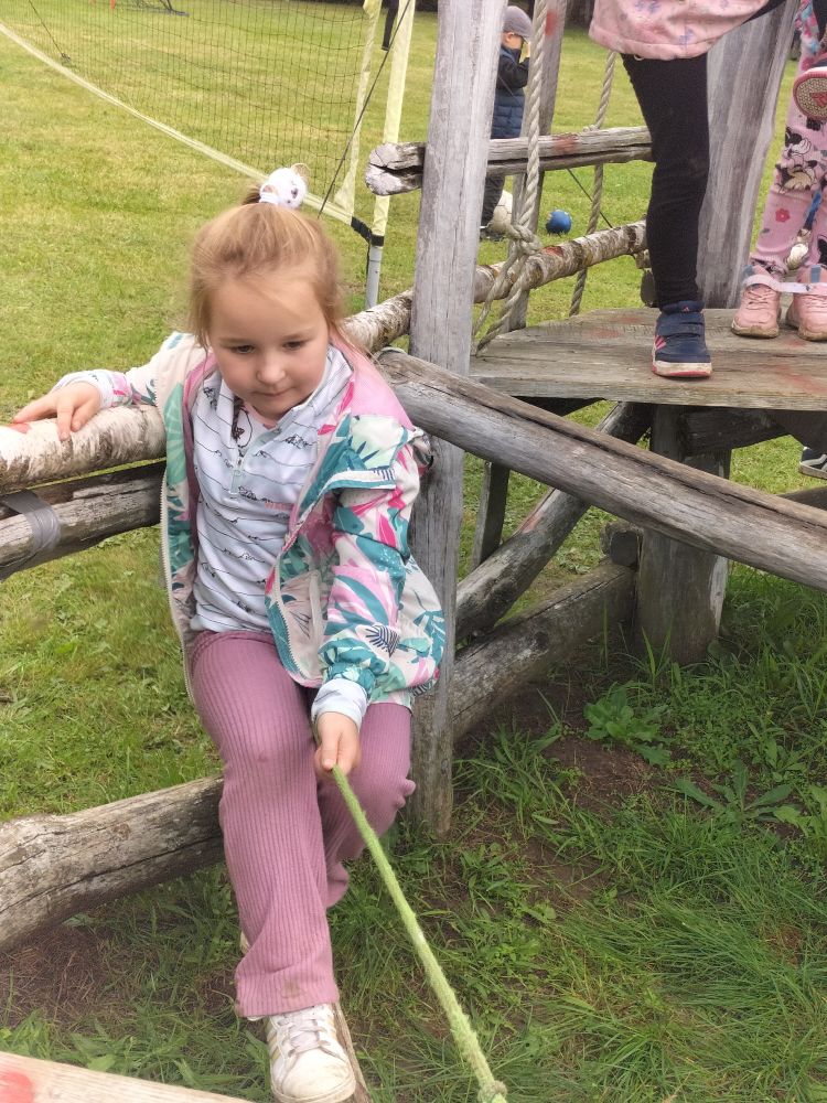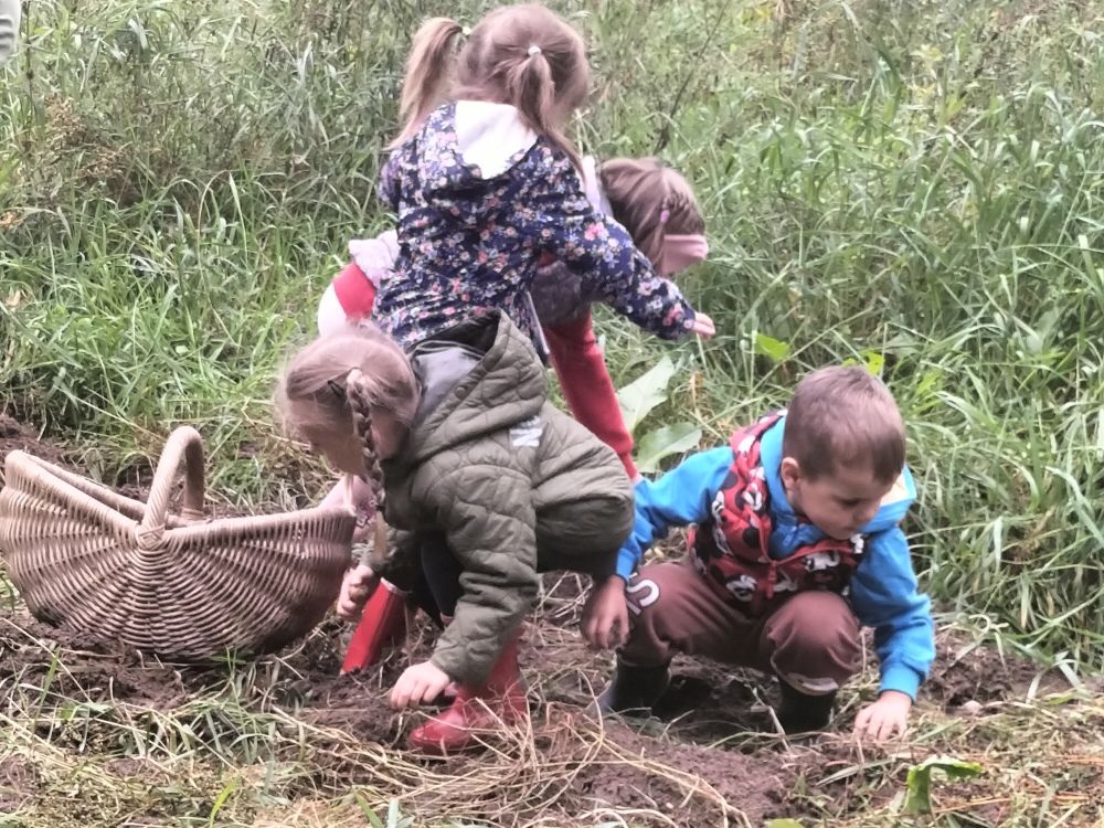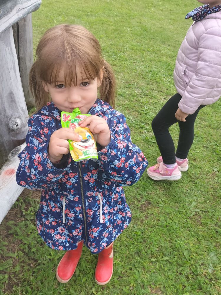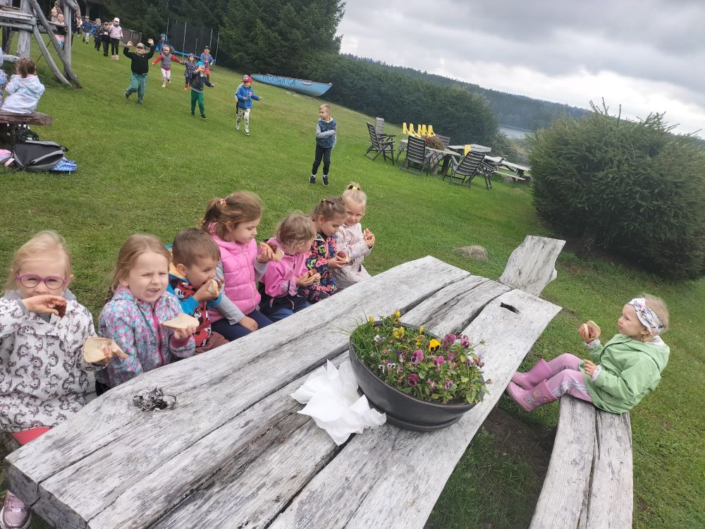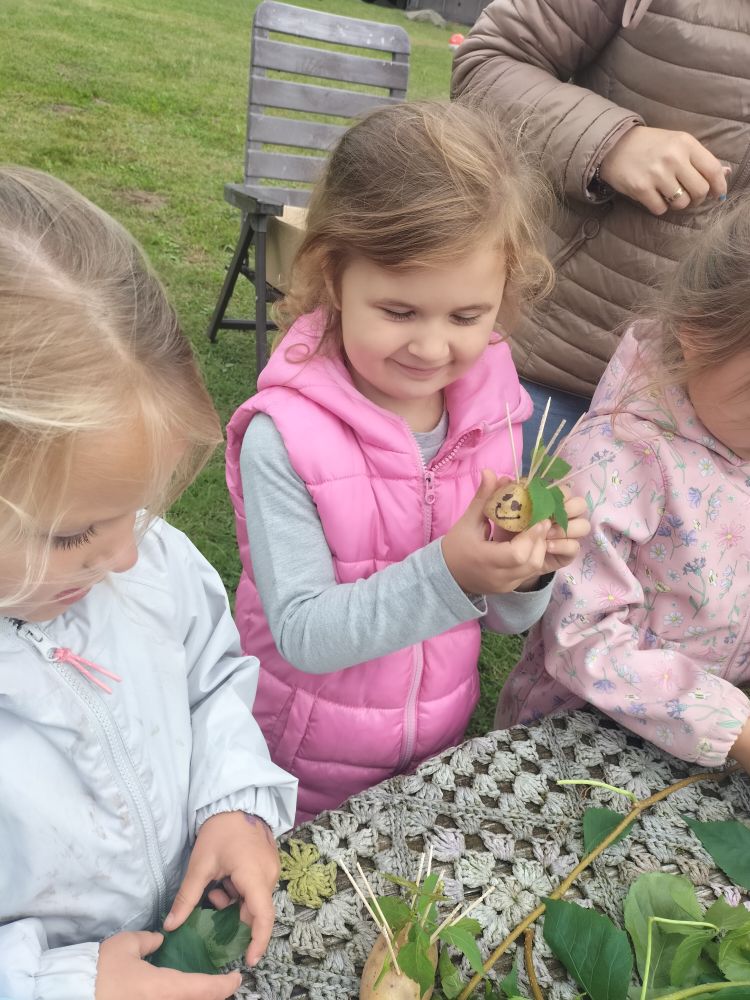 15 września 2025 roku grupy Niebieska i Czerwona wybrały się na pierwszą wycieczkę w tym roku szkolnym. Okazją było Święto Pieczonego Ziemniaka. W gospodarstwie agroturystycznym w miejscowości Mierkinie czekało na przedszkolaków mnóstwo atrakcji. Na pamiątkę spotkania dzieci wykonały ziemniaczanego jeżyka. Nie mogło także zabraknąć ogniska i degustacji pieczonych ziemniaków. Serdeczne podziękowania gospodarzom za dzień pełen wrażeń.