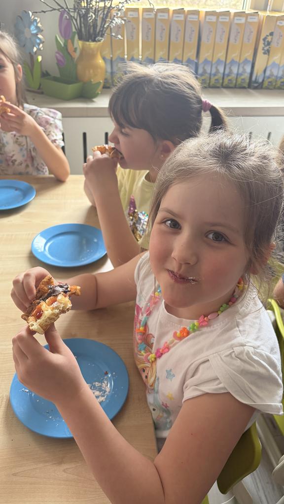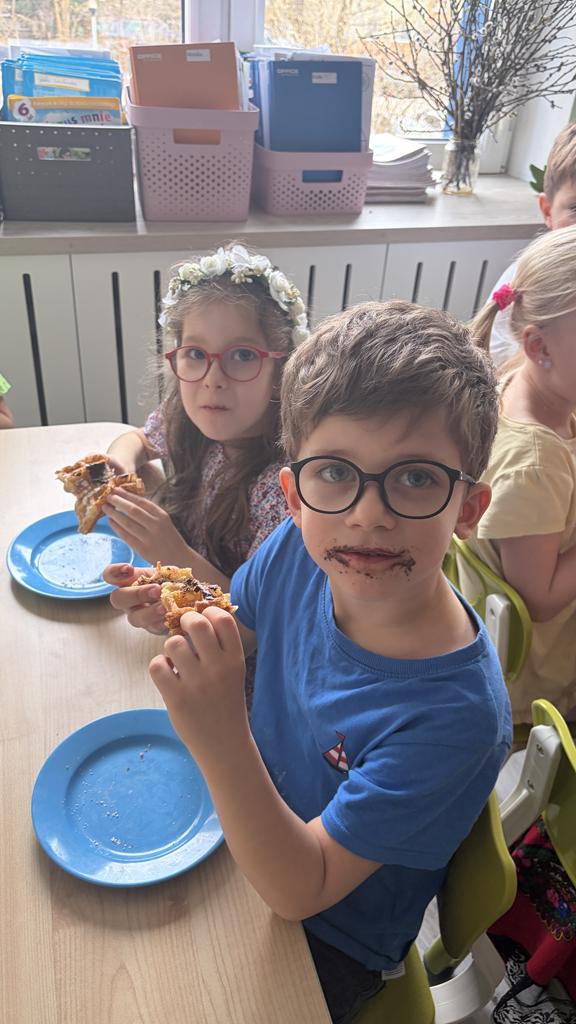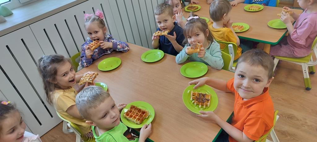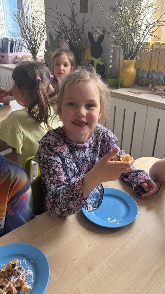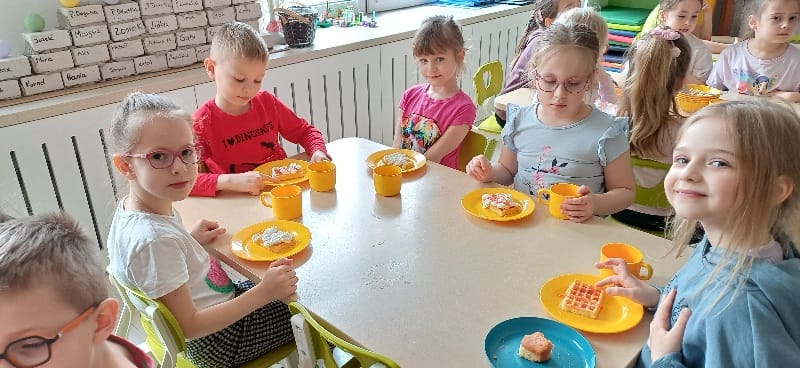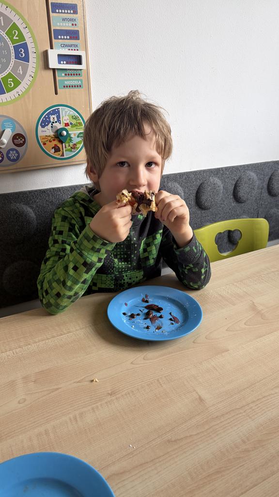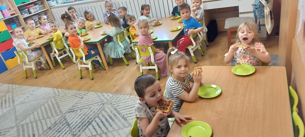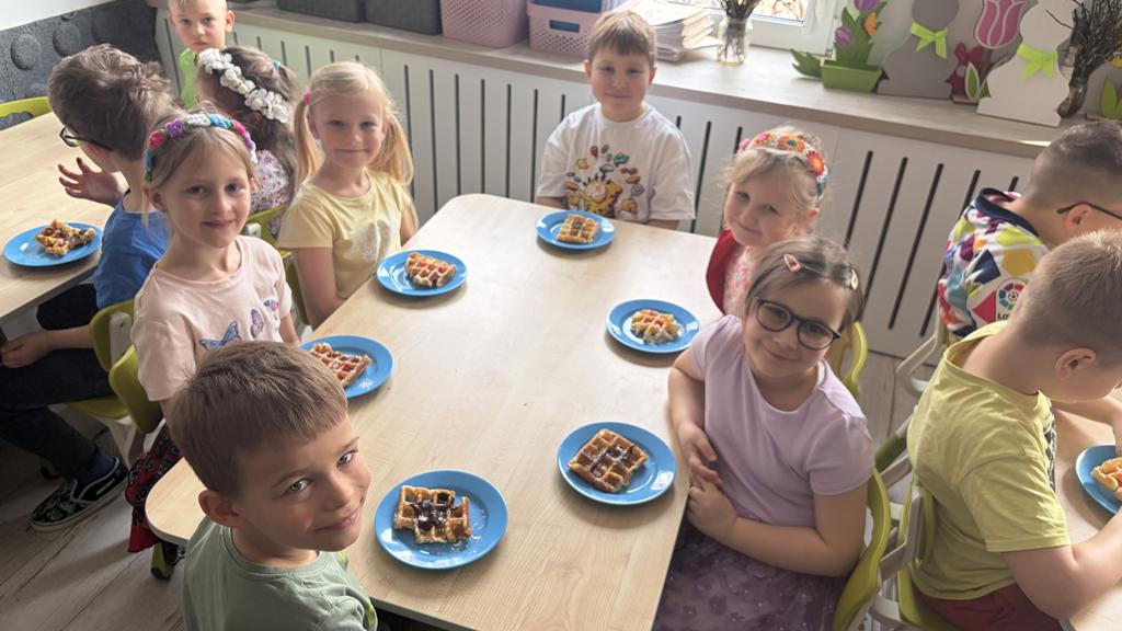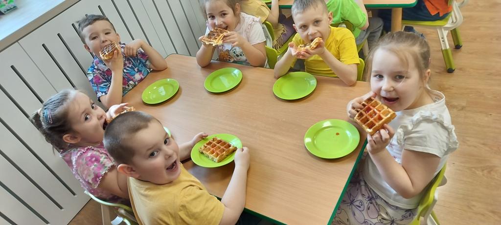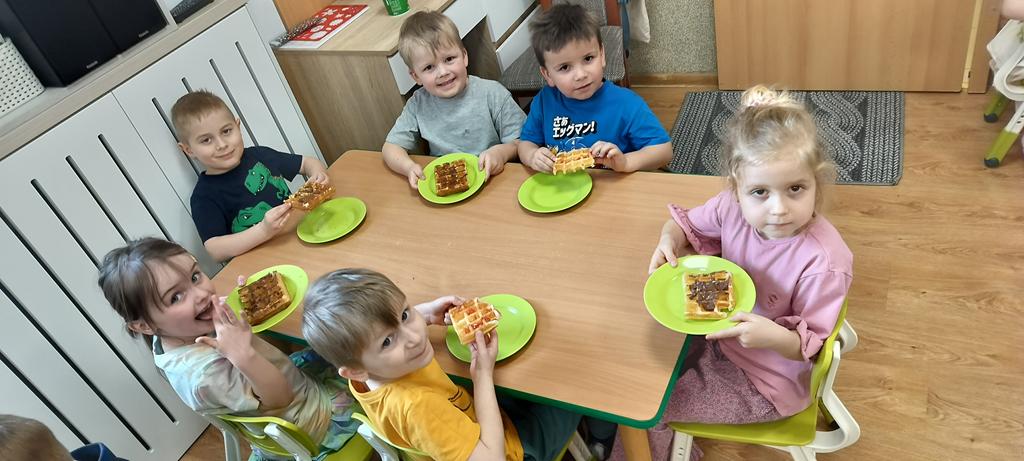 DZIEŃ GOFRA 26 marca, 202624 marca, 2026 Dziś grupy Fioletowa i Niebieska obchodziły Dzień Gofra. To święto zawsze raduje dzieci, bo gofry z nutellą czy sosem owocowym to najlepsze, co może się nam przydarzyć . Dziękujemy naszym Paniom, za upieczenie nam tych pyszności.