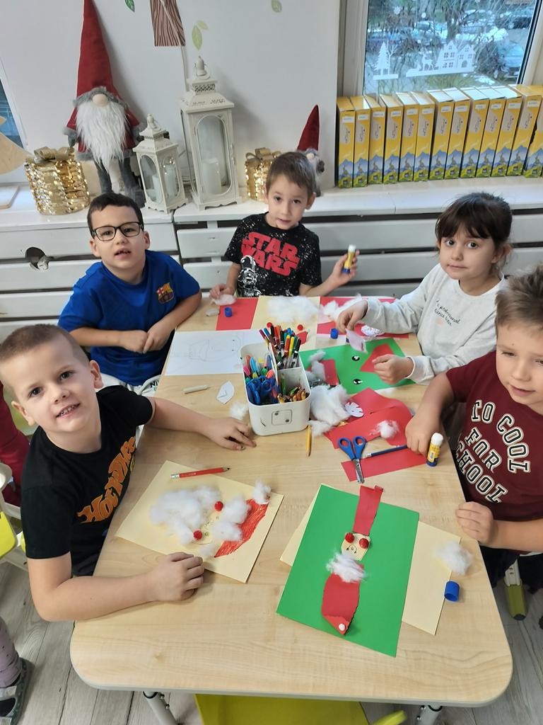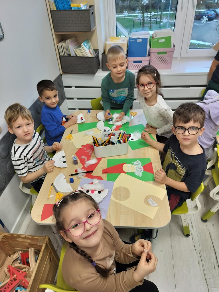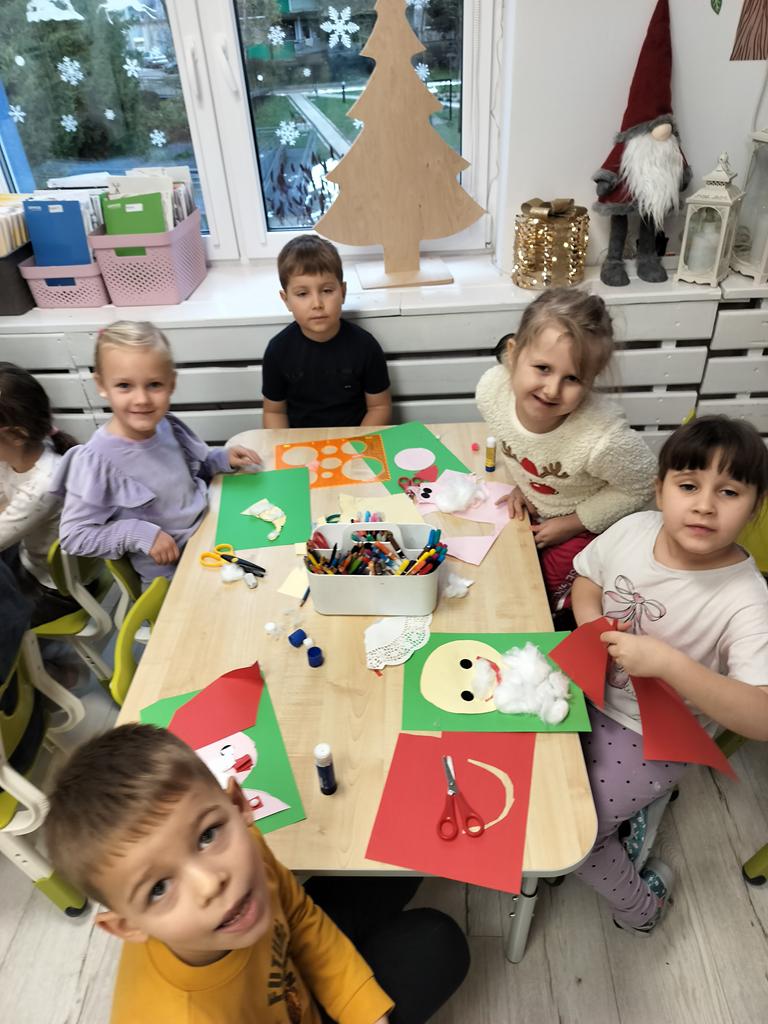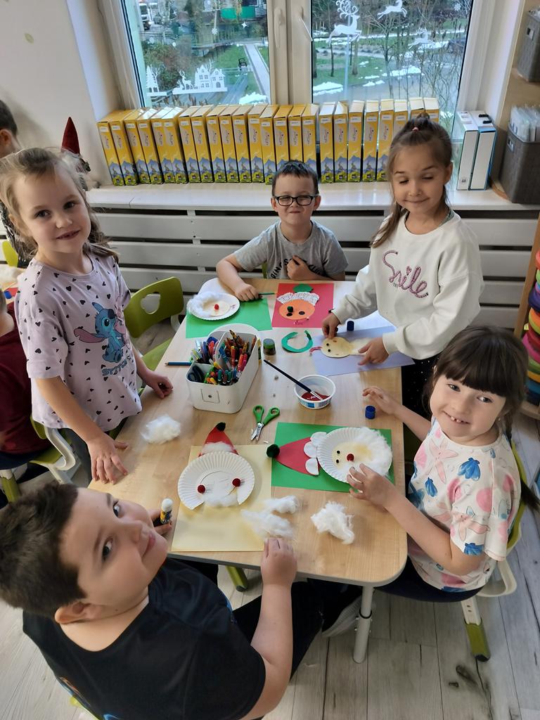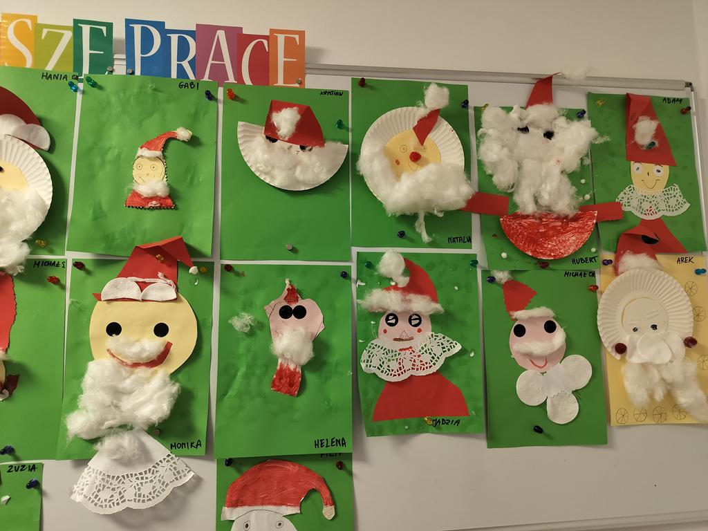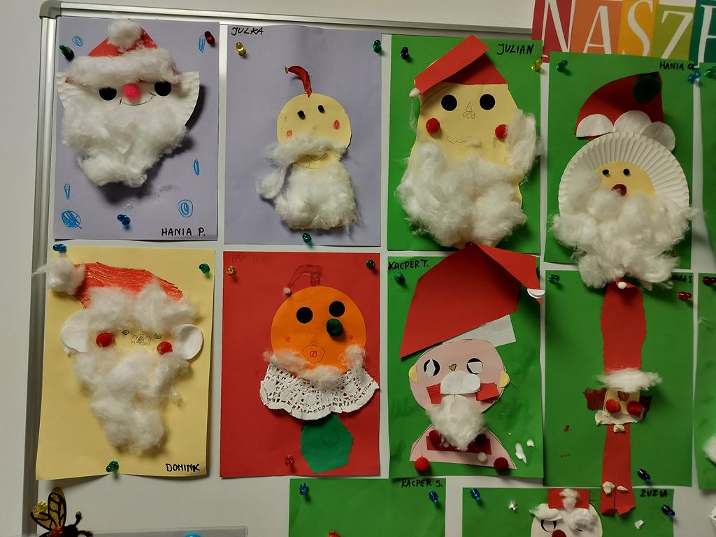 Dziś Fioletowi kreatywnie podeszli do zadania i każdy wykonał portret Mikołaja wg własnego pomysłu.