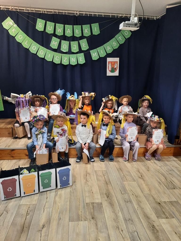 Dzieci z grupy FIOLETOWEJ wzięły udział w quizie wiedzy „Suwałki – Moje Ekologiczne Miasto”, które odbyło się w Przedszkolu nr 4 z Oddziałem Integracyjnym w Suwałkach dnia 22.10.2025 r.