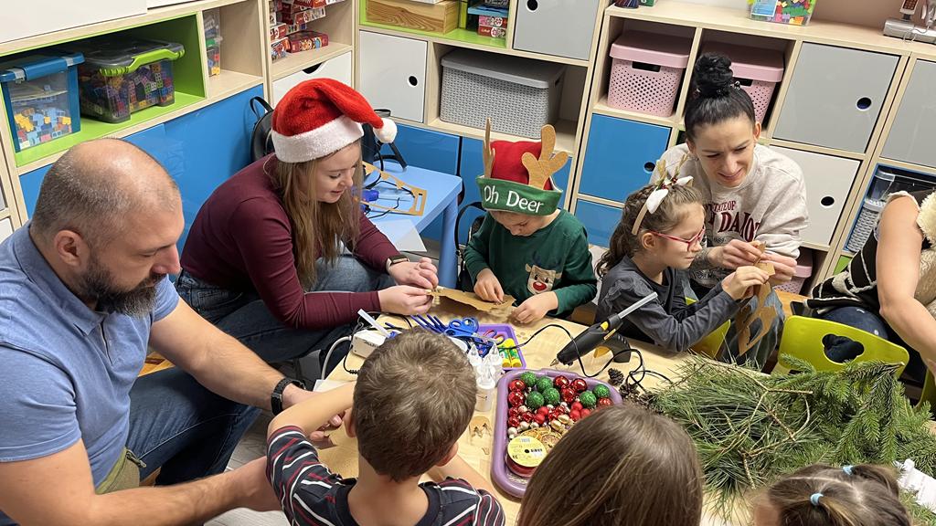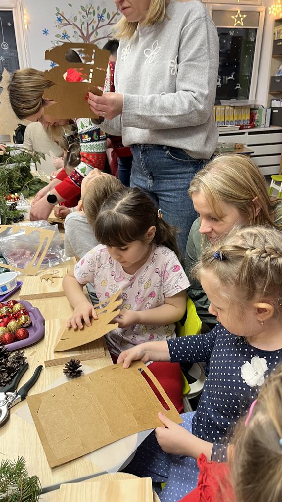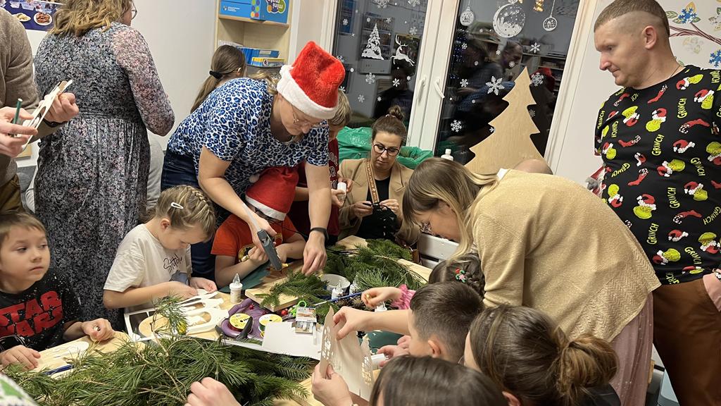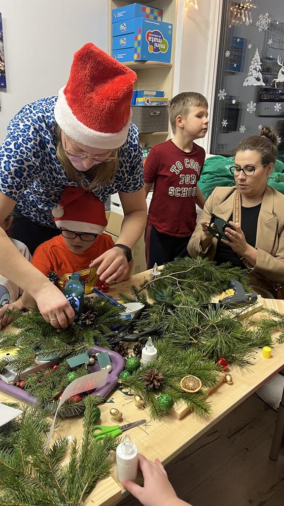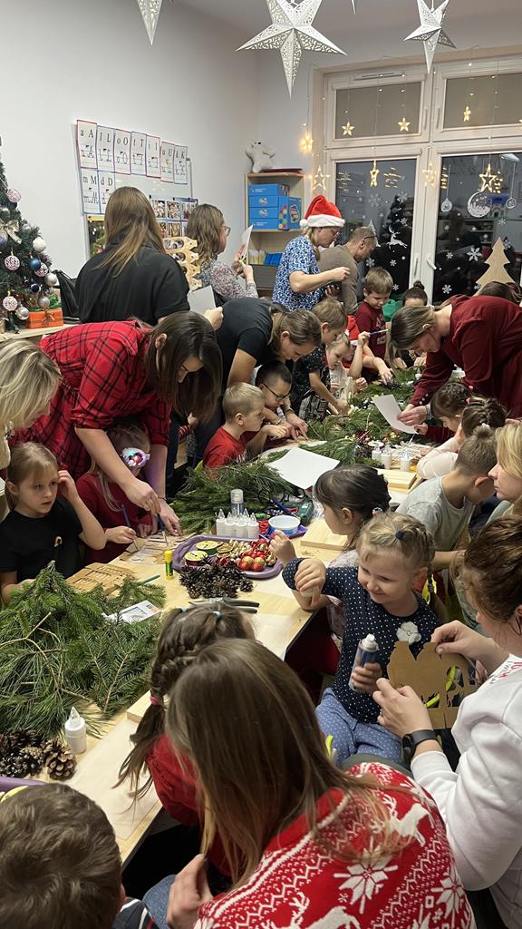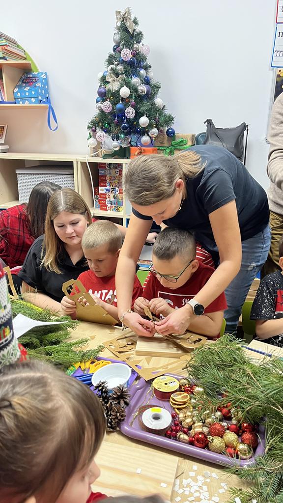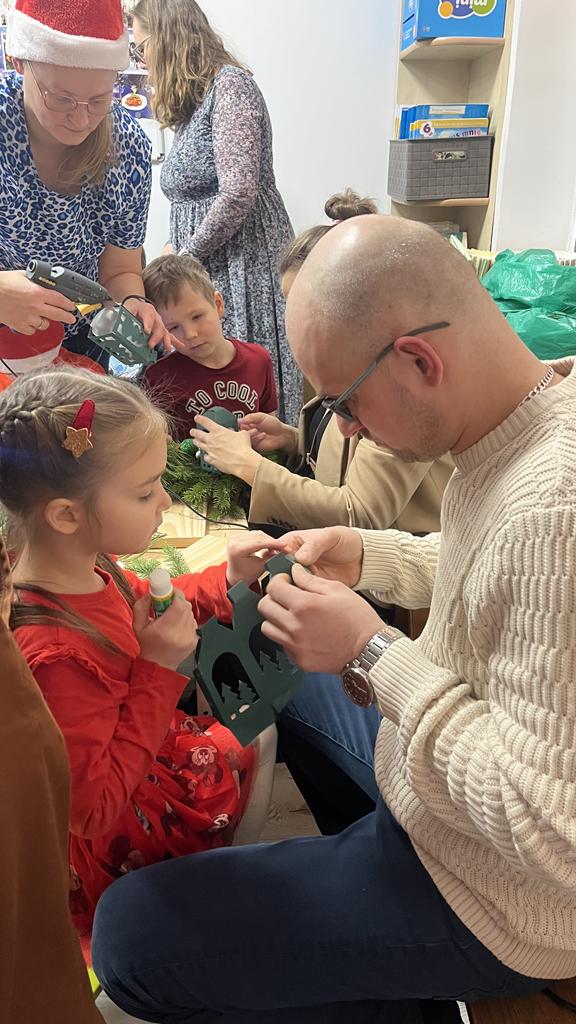 Dnia 15.12. w Naszym Przedszkolu odbyło się świąteczne spotkanie, podczas którego dzieci wspólnie z rodzicami wykonywały stroiki bożonarodzeniowe. Działanie to miało charakter swobodny i integracyjny, sprzyjając wspólnemu spędzaniu czasu oraz budowaniu relacji rodzinnych.