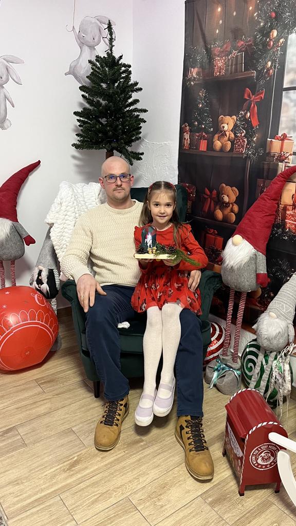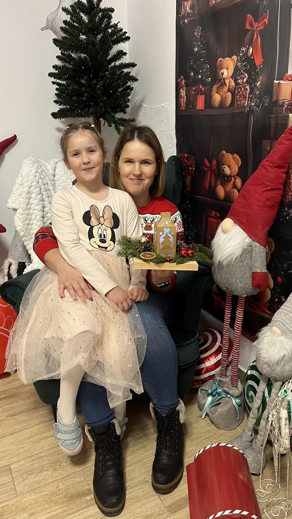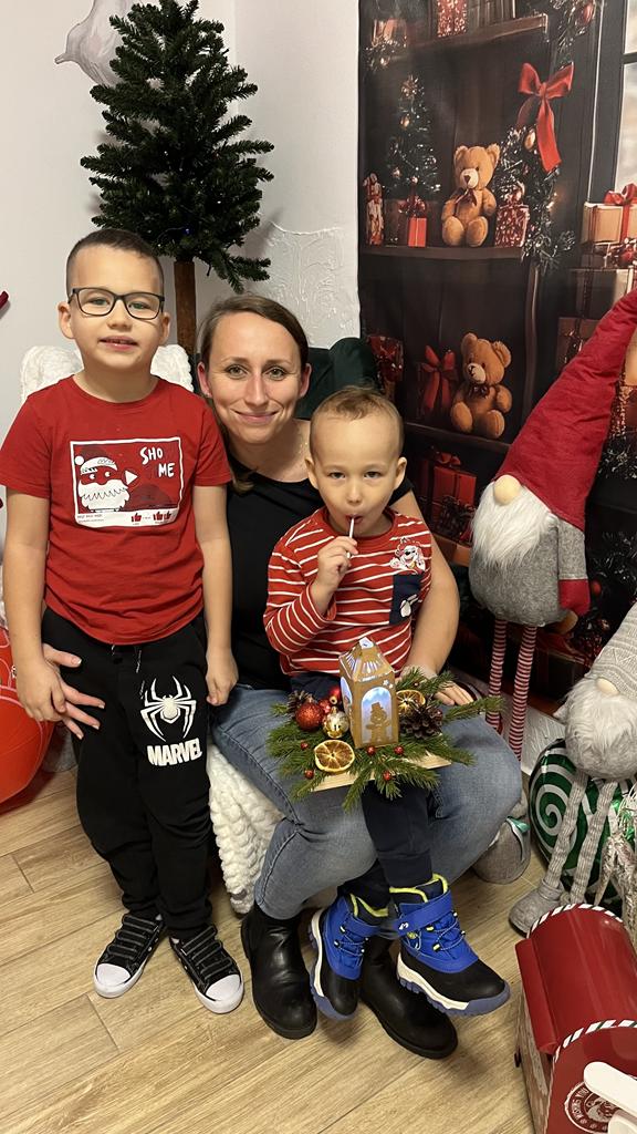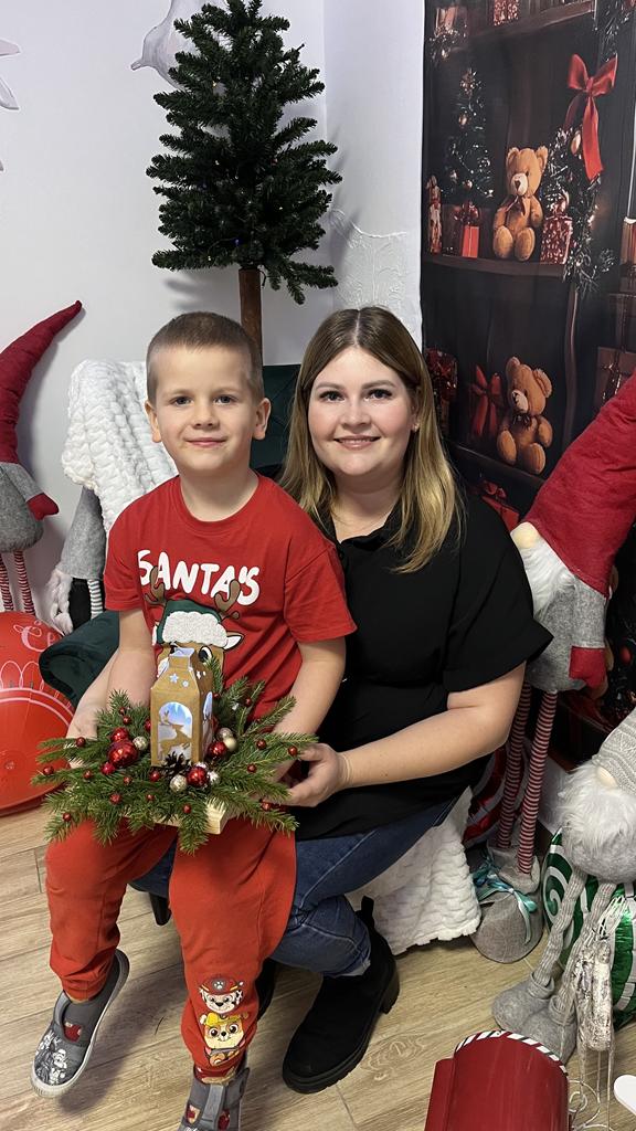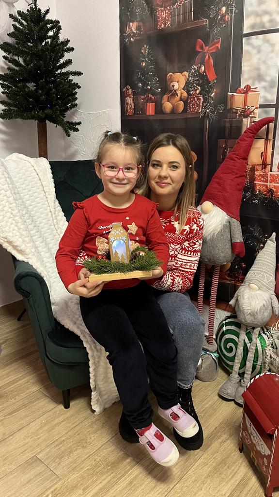 W trakcie spotkania odbyła się również świąteczna sesja zdjęciowa, podczas której dzieci wraz z rodzicami wykonywały pamiątkowe fotografie w świątecznej scenerii. Dodatkowo w tle rozbrzmiewały kolędy, których wspólne słuchanie wprowadziło wszystkich w świąteczny nastrój i podkreśliło wyjątkowy charakter spotkania.