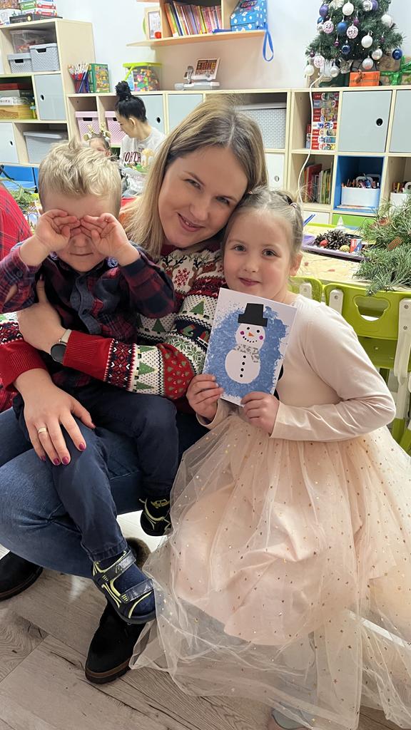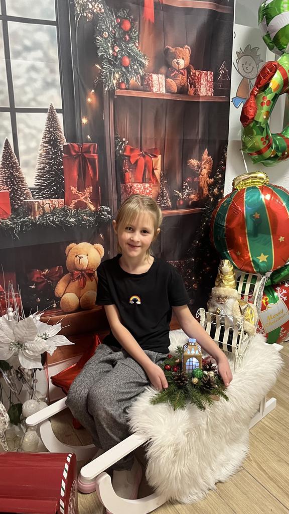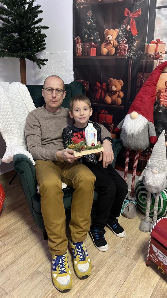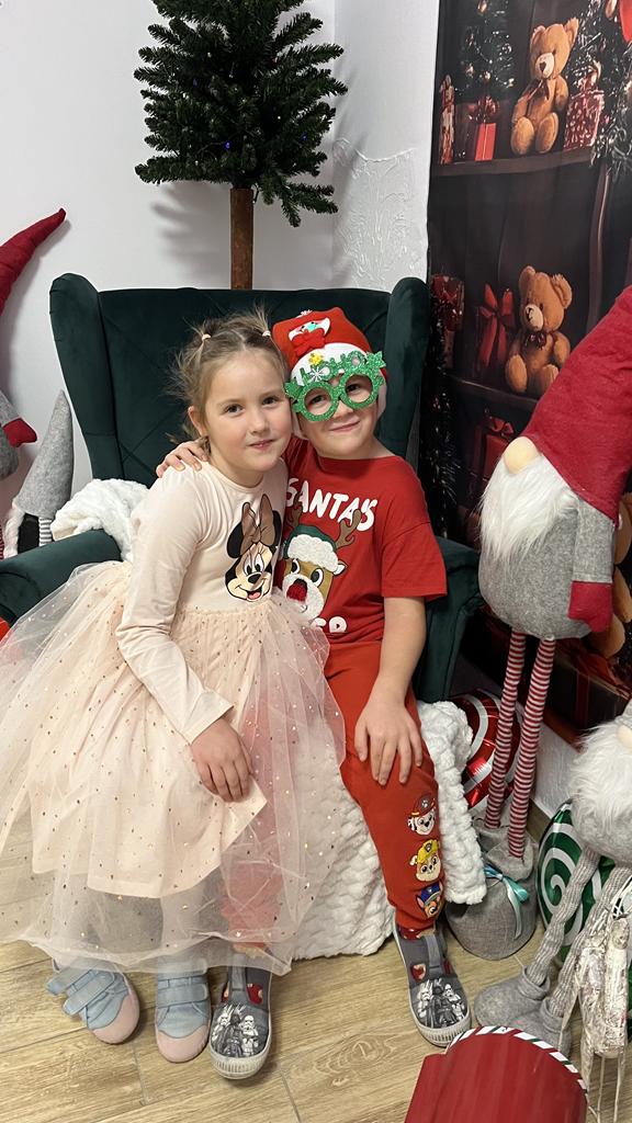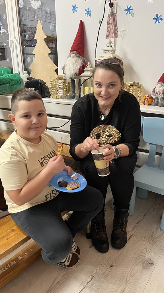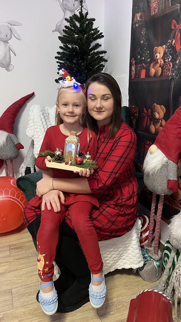 W trakcie spotkania odbyła się również świąteczna sesja zdjęciowa, podczas której dzieci wraz z rodzicami wykonywały pamiątkowe fotografie w świątecznej scenerii. Dodatkowo w tle rozbrzmiewały kolędy, których wspólne słuchanie wprowadziło wszystkich w świąteczny nastrój i podkreśliło wyjątkowy charakter spotkania.