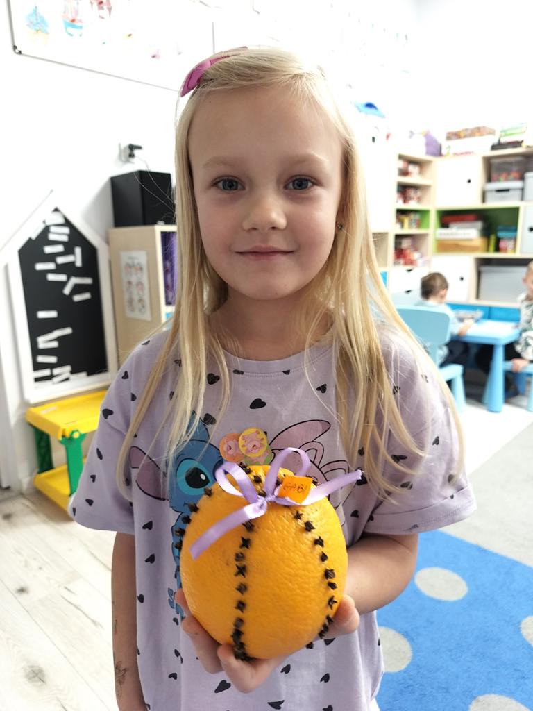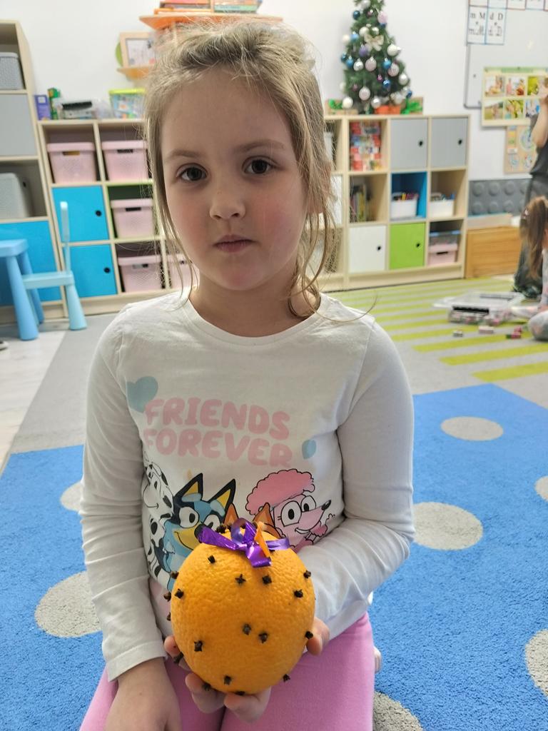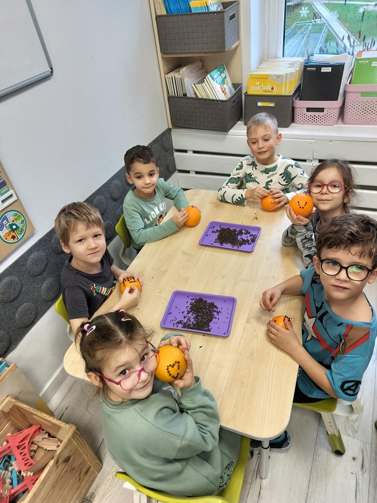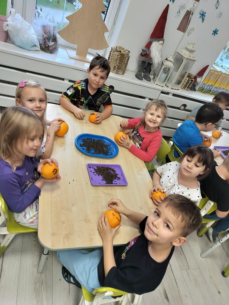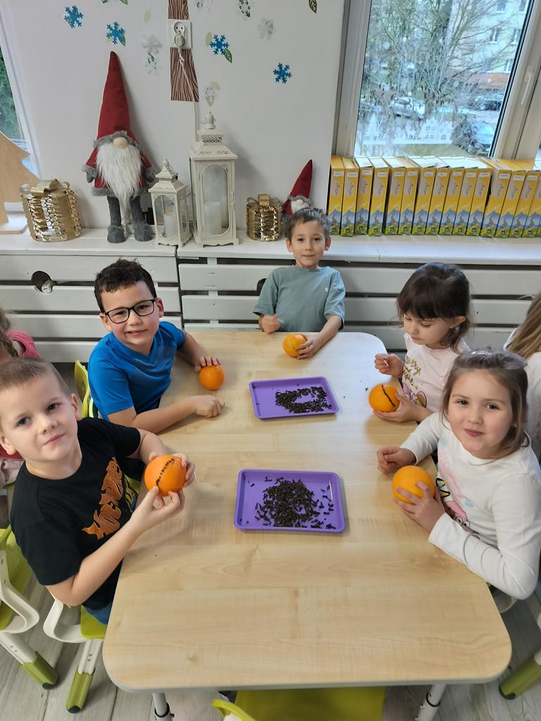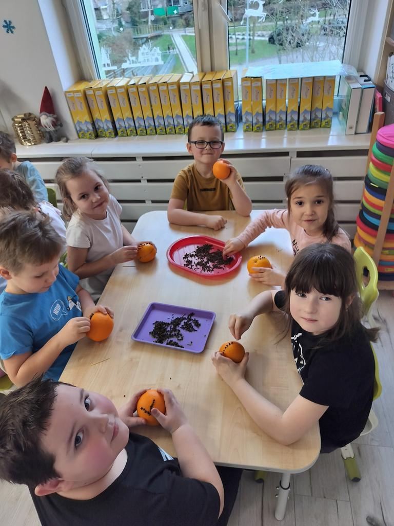 Jakie są zapachy zbliżających się świąt? W grupie Fioletowej to były pomarańcze z goździkami.