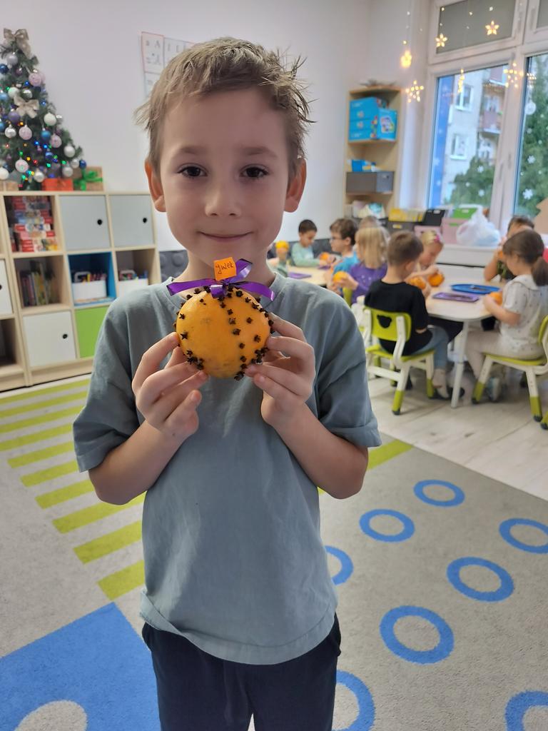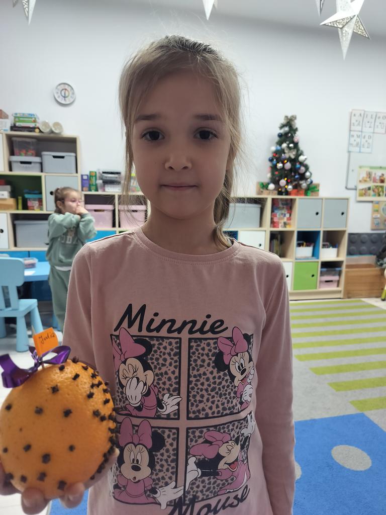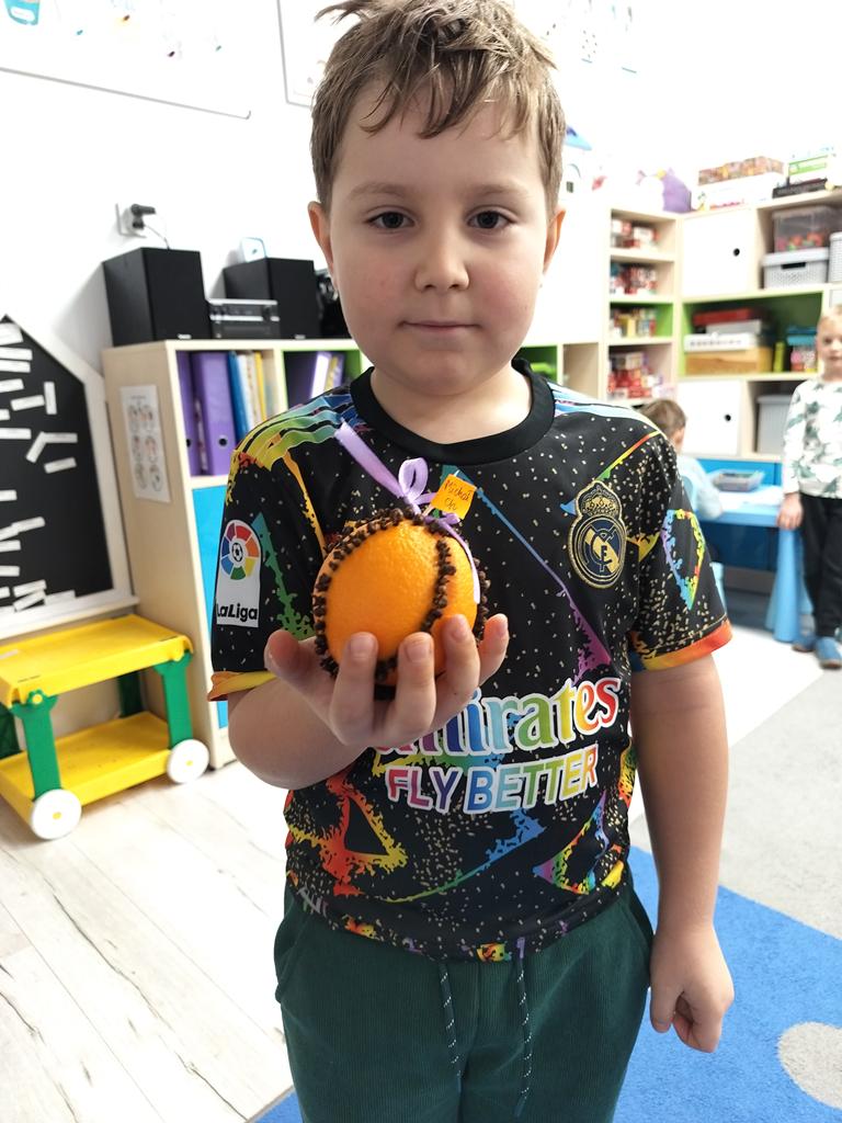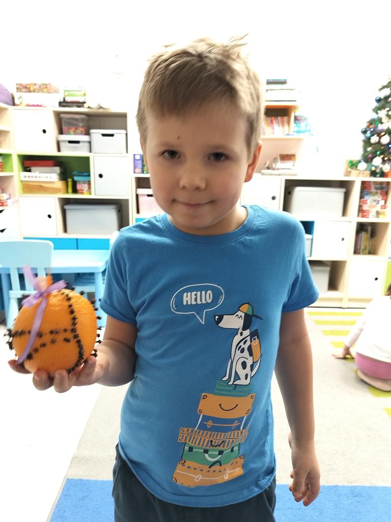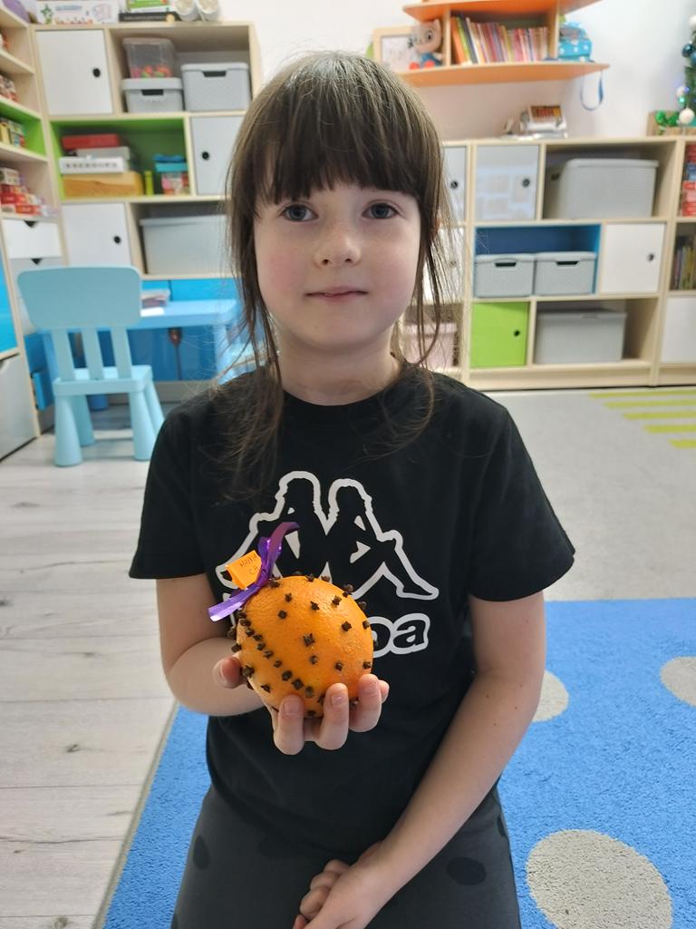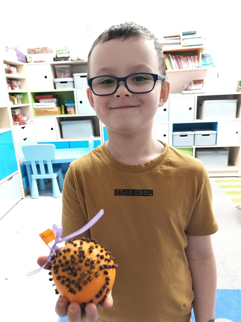 Jakie są zapachy zbliżających się świąt? W grupie Fioletowej to były pomarańcze z goździkami.