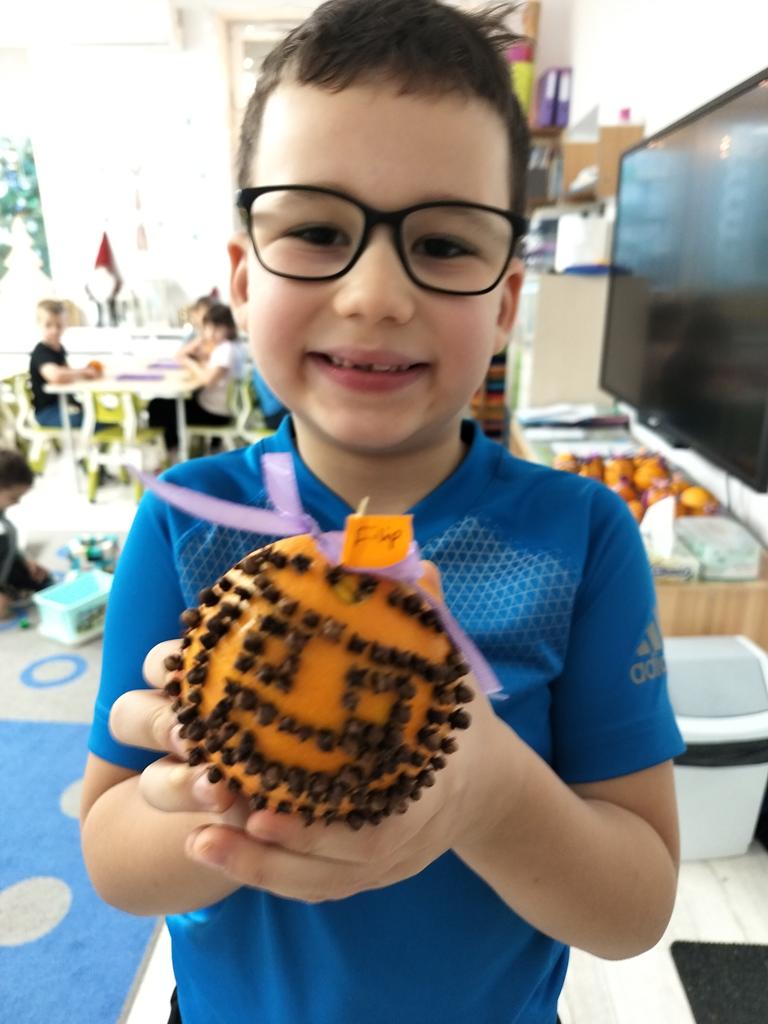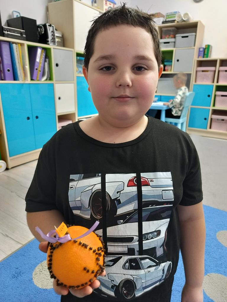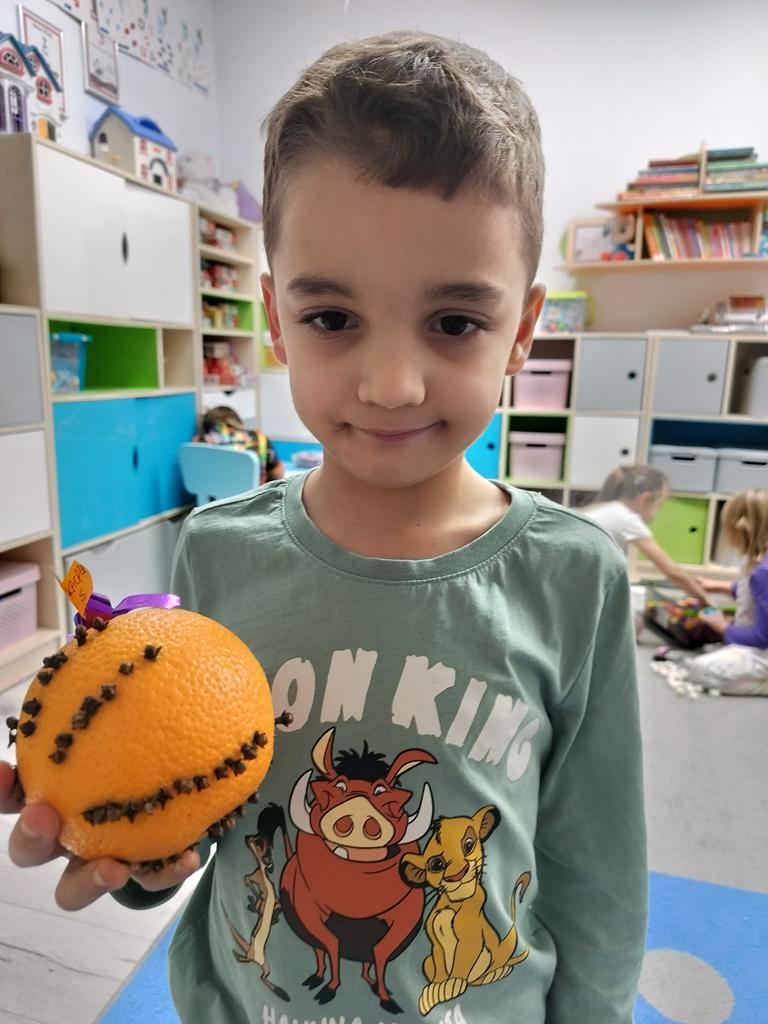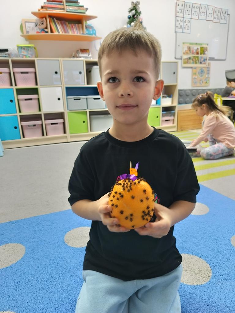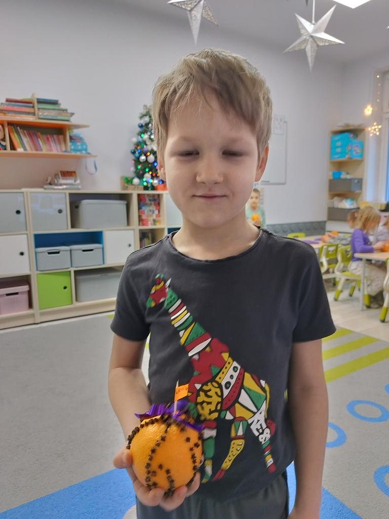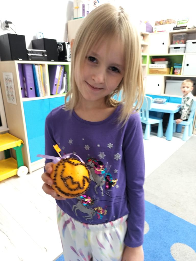 Jakie są zapachy zbliżających się świąt? W grupie Fioletowej to były pomarańcze z goździkami.