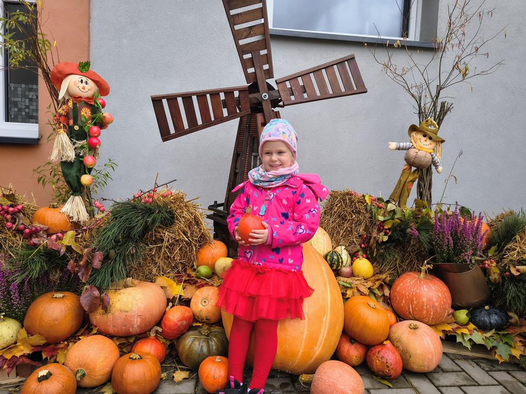 Dziękujemy wszystkim Rodzicom za udział w inicjatywie rodzicielskiej jakim była pomoc w stworzeniu „dyniowego zakątka”, który wygląda przepięknie i aż kusi aby zrobić w nim sesje zdjęciowe. Grupa Niebieska właśnie taką sesję wykonała taką sesję a później przepiękną pracę plastyczną.