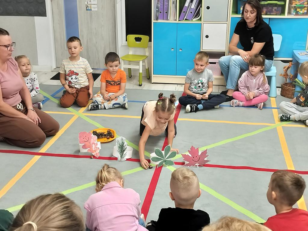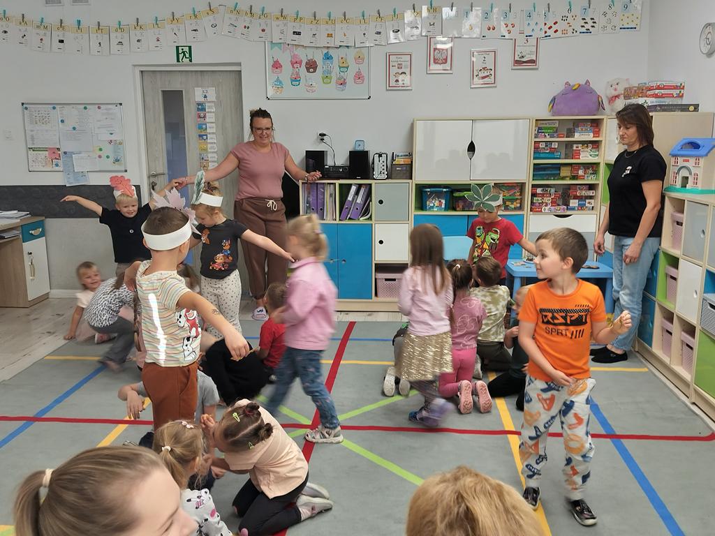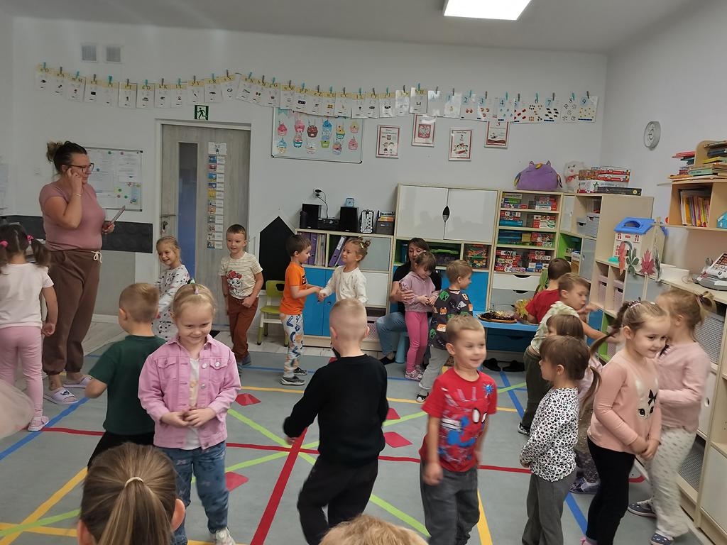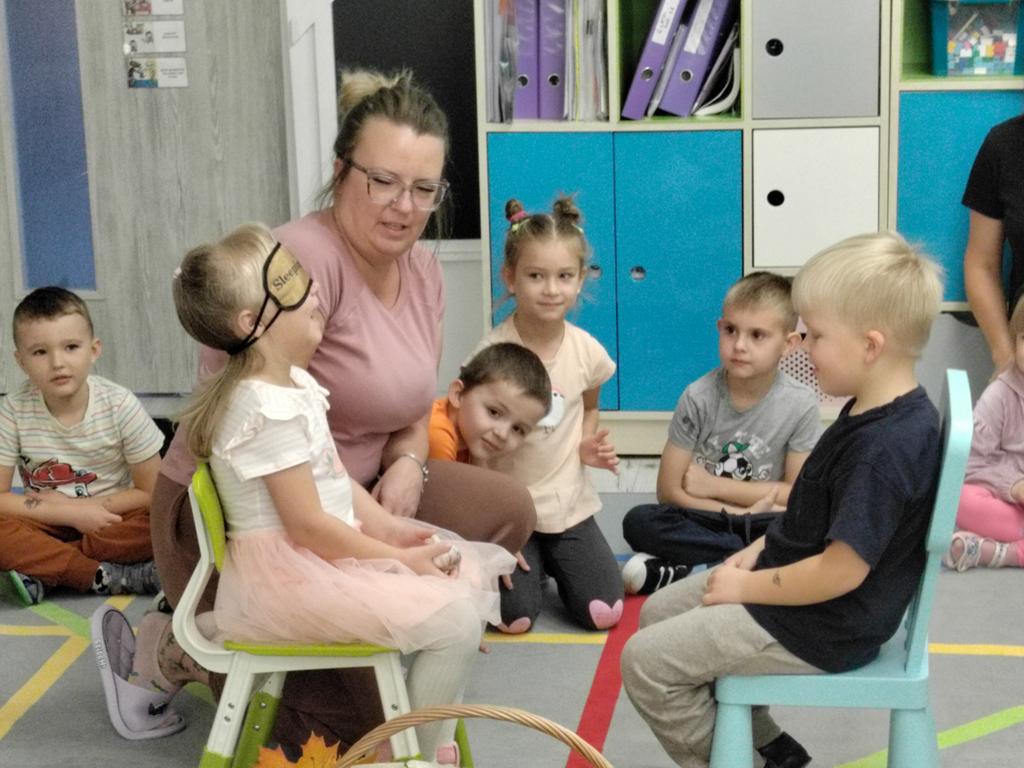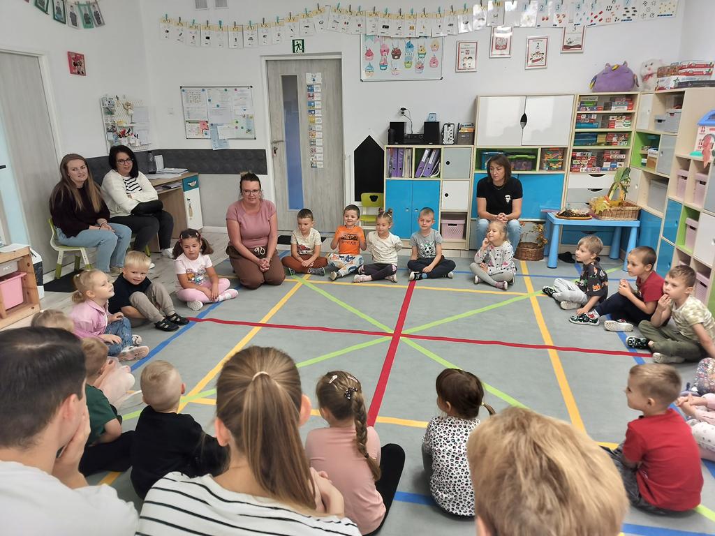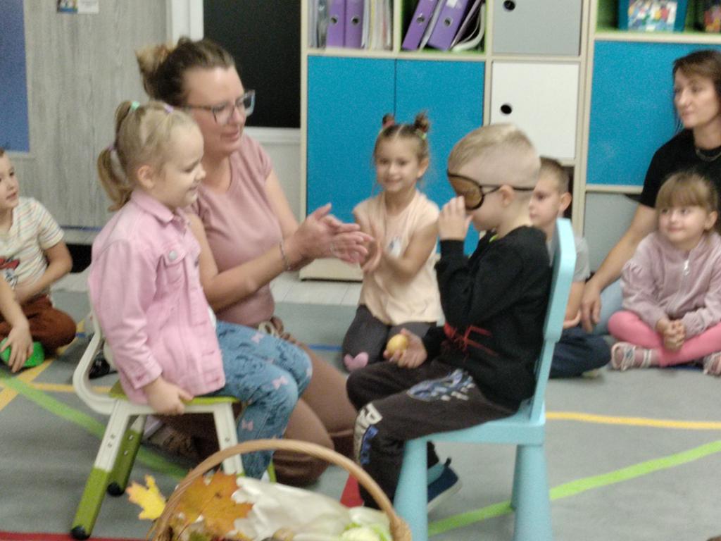 08.10 Grupa Niebieska gościła swoich Rodziców na zajęciach otwartych, na których dzieci pokazały jak pięknie budują wspólne relacje ze sobą i z naturą. Pokazały, jak za pomocą zmysłów poznają otaczający je, jesienny świat. Zajęcia objęły elementy edukacji przyrodniczej, muzycznej, ruchowej, matematycznej. Było też dużo emocji i pokonywania własnych trudności. Dzieci jak zwykle spisały się na medal. Aktywnie i chętnie uczestniczyły w zajęciach.