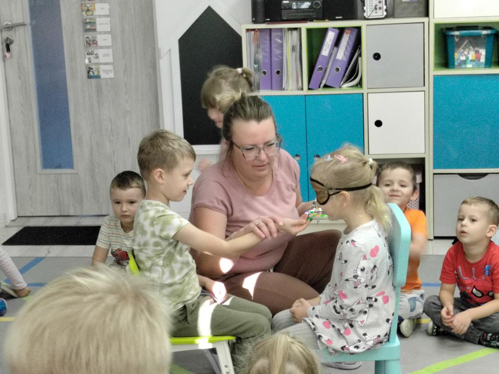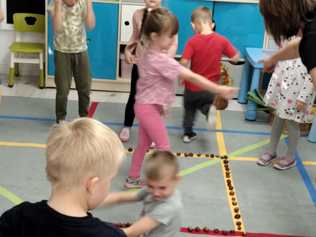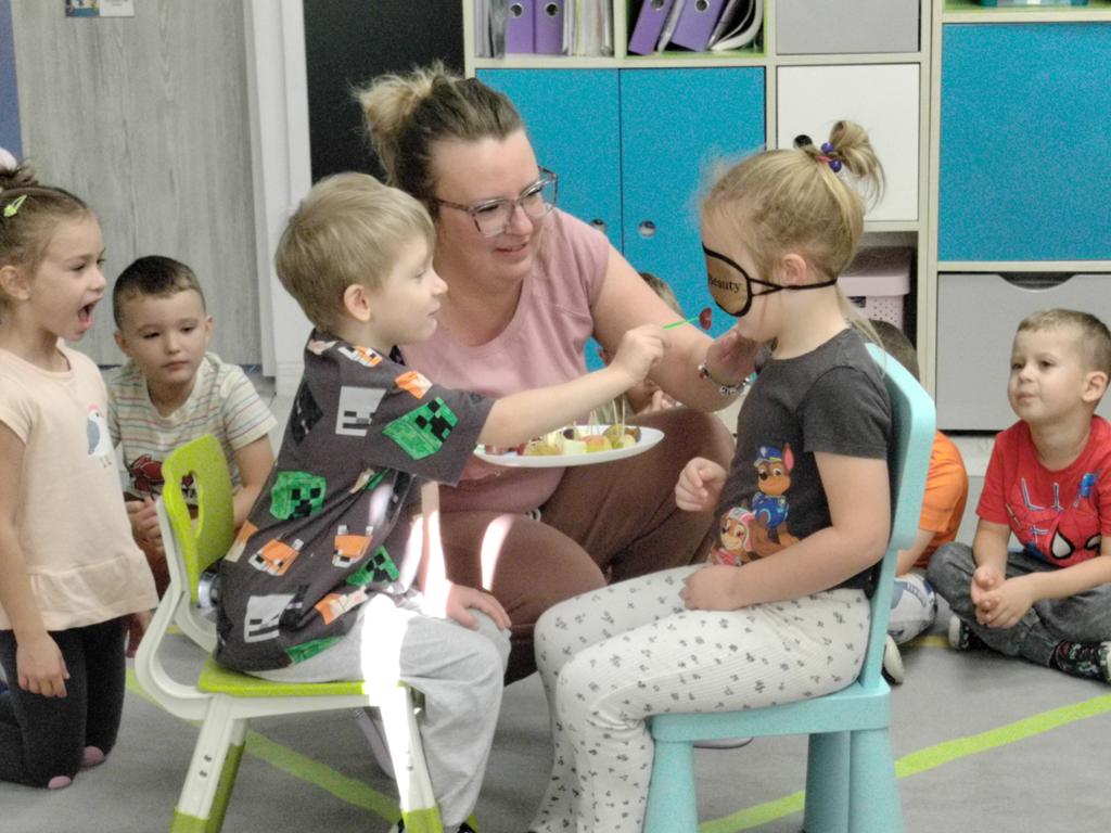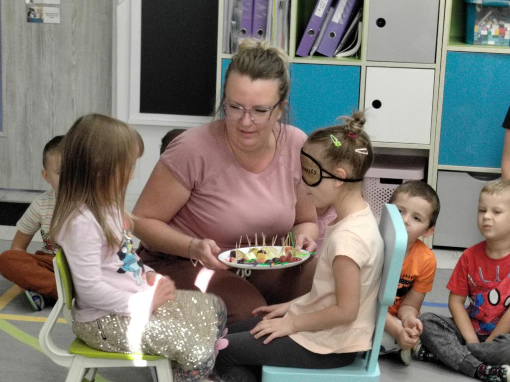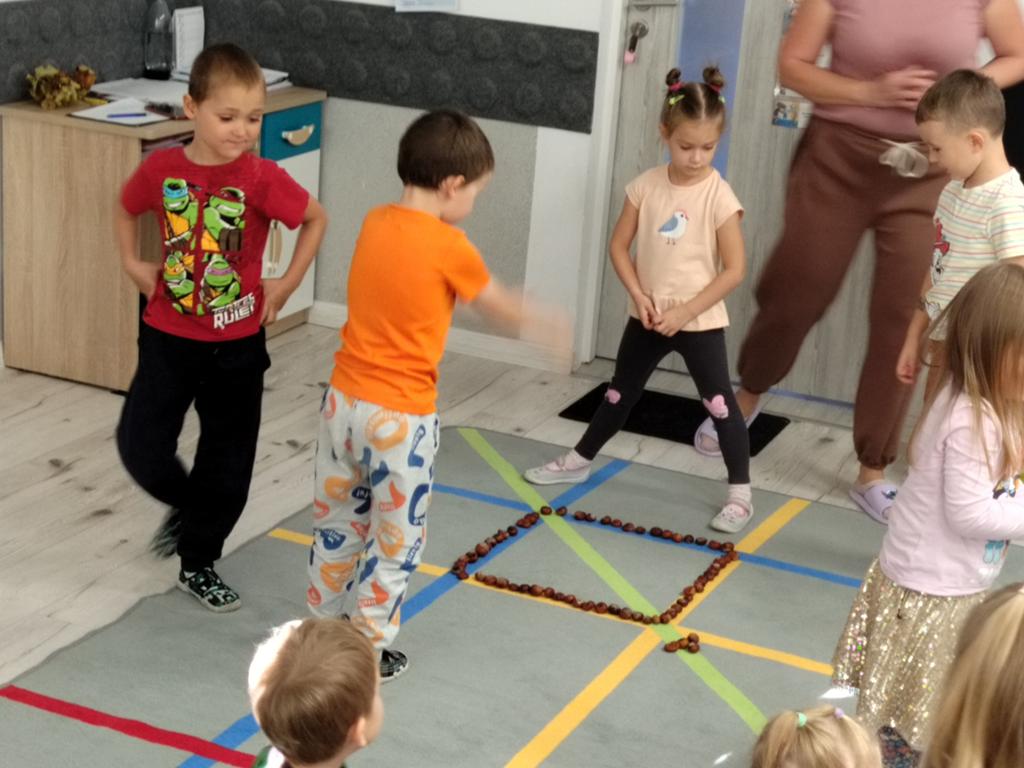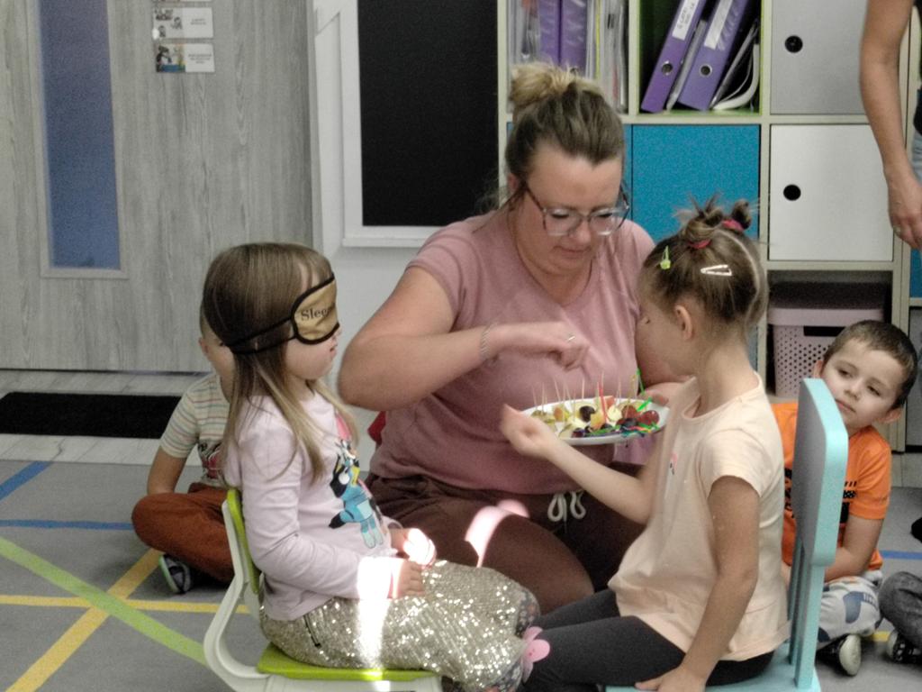 08.10 Grupa Niebieska gościła swoich Rodziców na zajęciach otwartych, na których dzieci pokazały jak pięknie budują wspólne relacje ze sobą i z naturą. Pokazały, jak za pomocą zmysłów poznają otaczający je, jesienny świat. Zajęcia objęły elementy edukacji przyrodniczej, muzycznej, ruchowej, matematycznej. Było też dużo emocji i pokonywania własnych trudności. Dzieci jak zwykle spisały się na medal. Aktywnie i chętnie uczestniczyły w zajęciach.