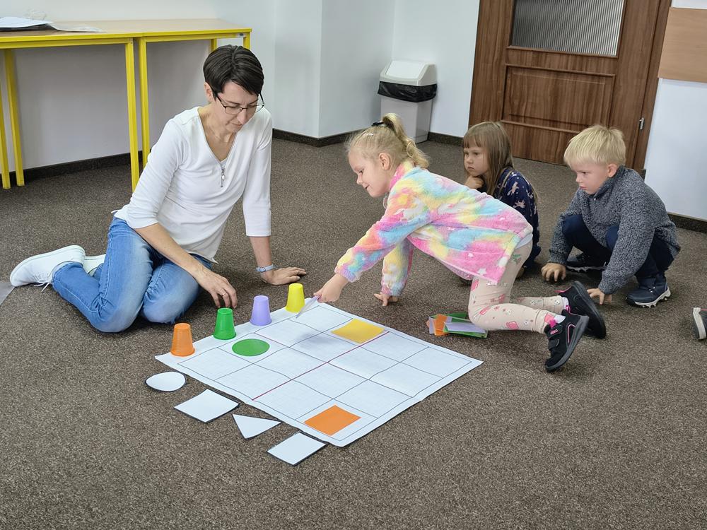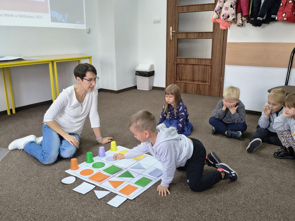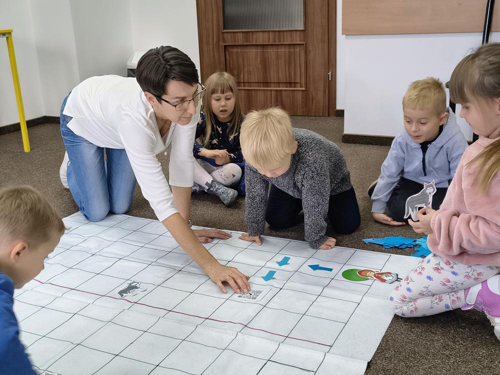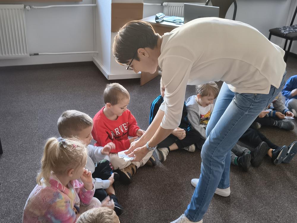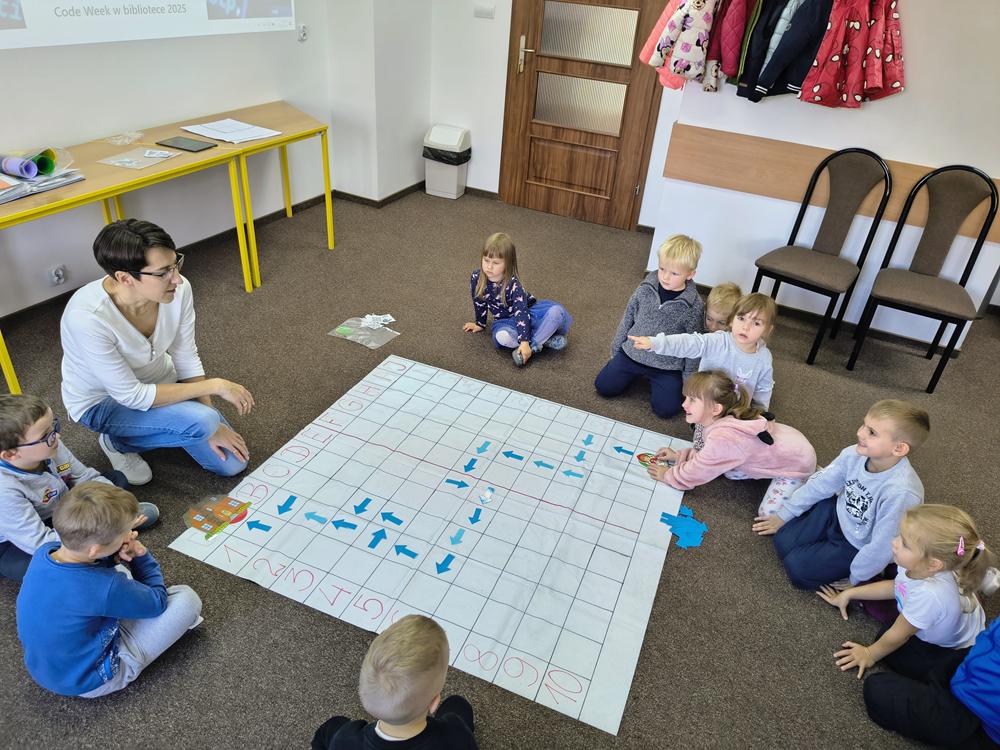 Niebiescy wybrali się do pobliskiej Biblioteki Pedagogicznej, w której właśnie dzisiaj (13.10) rozpoczął się międzynarodowy dwutygodniowy code week, czyli tydzień kodowania. Zajęcia były bardzo ciekawe, kodowanie połączone ze znajomością baśni. Dzieci były bardzo zainteresowane zajęciami i bardzo chętnie wykonywały powierzone im zadania.