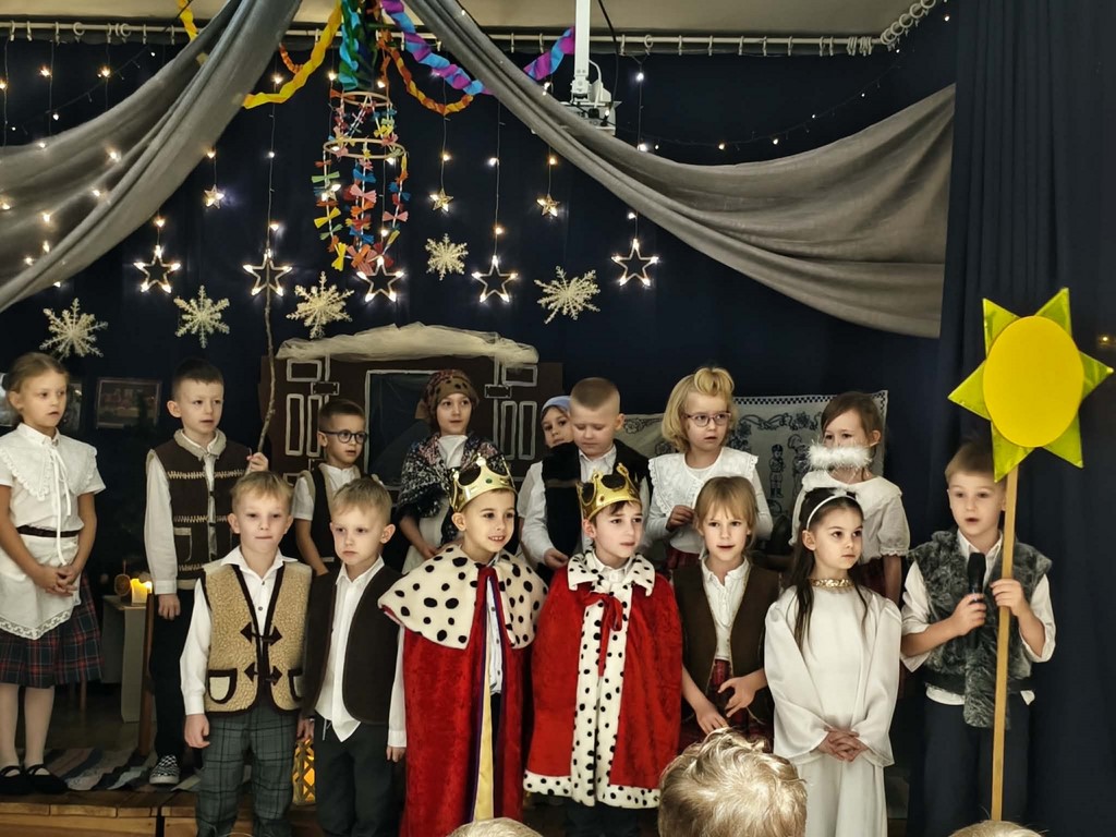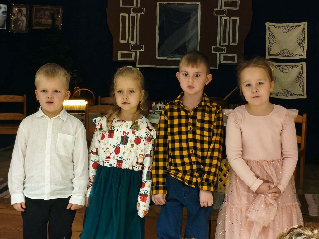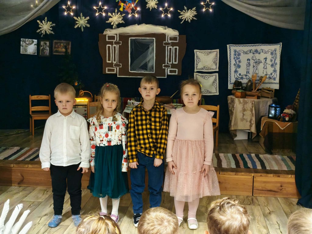Przegląd Kolęd i Pastorałek w Przedszkolu nr 4 12 grudnia, 2025 Dziś Weronika, Poliana, Hubert i Staś z grupy Niebieskiej reprezentowali nasze przedszkole z pastorałką „Była noc” w XIX Przeglądzie Kolęd i Pastorałek .