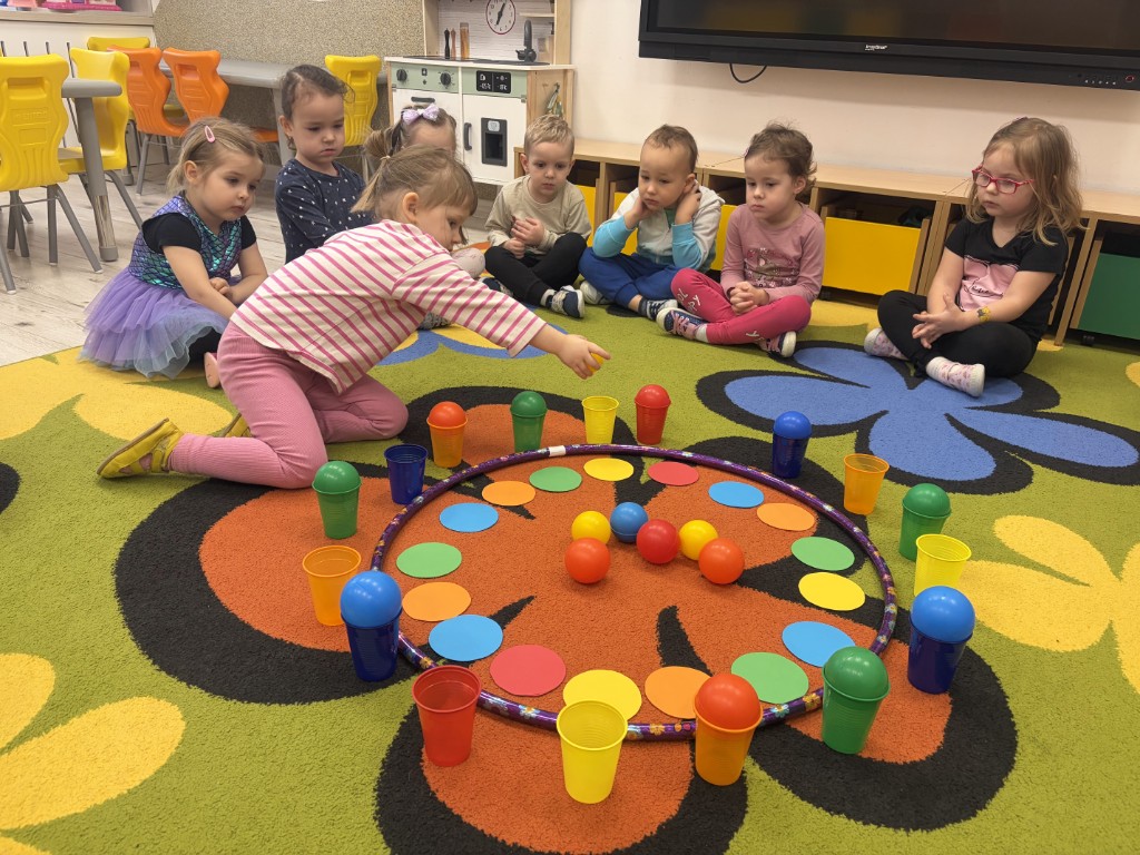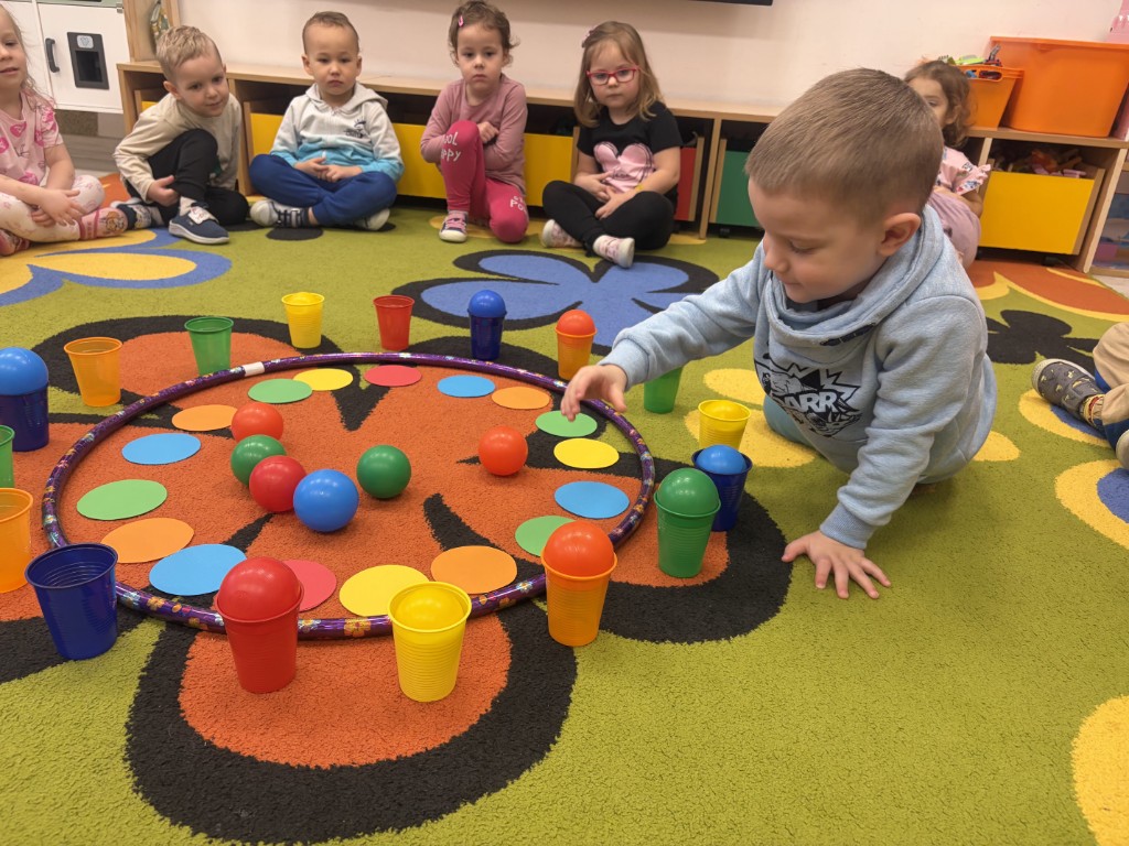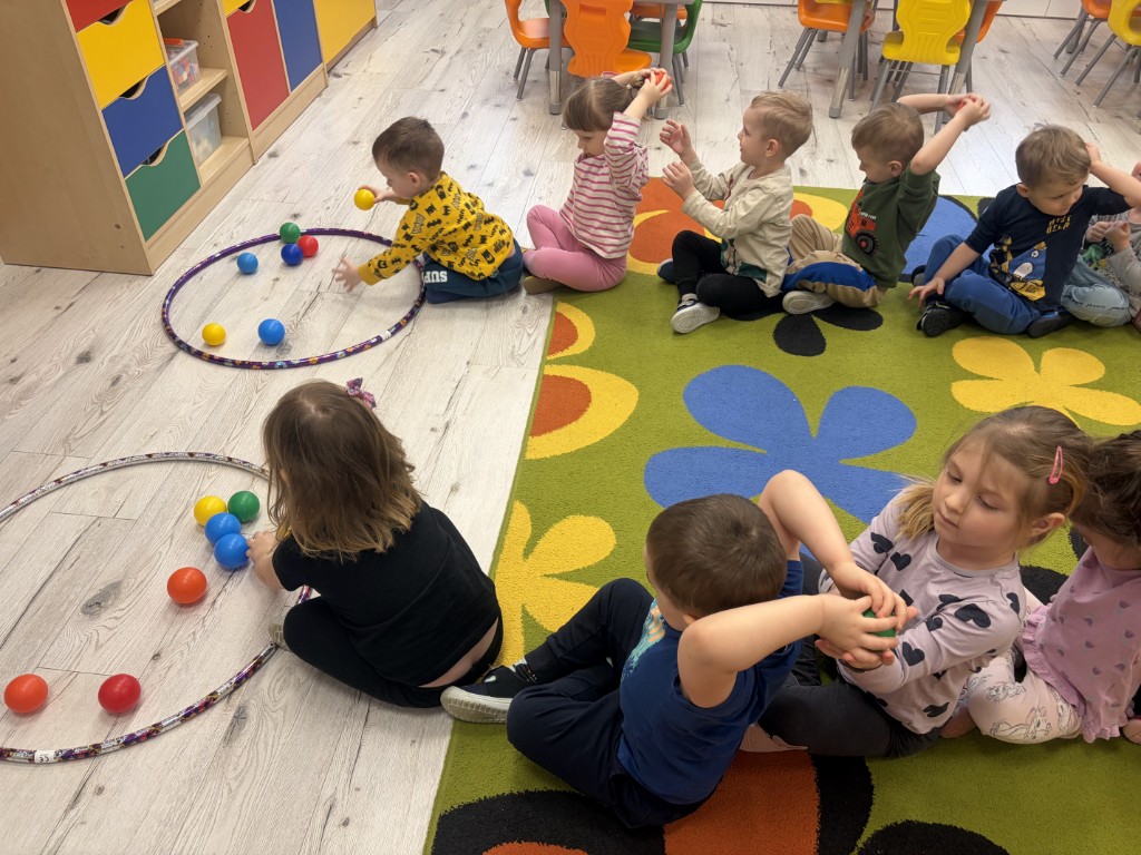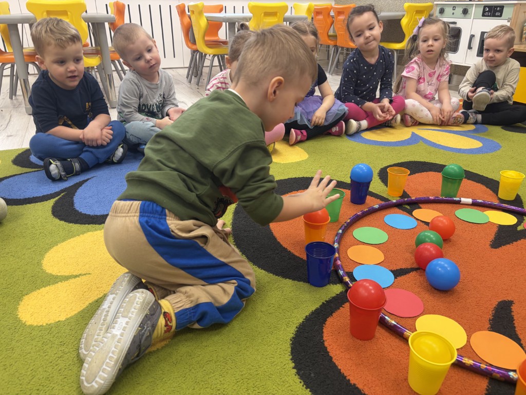 Zabawy Pomarańczowych 10 lutego, 2026 Grupa Pomarańczowa ćwiczyła koordynację wzrokowo-ruchową oraz współpracę w grupie. Zabawa sprzyjała koncentracji uwagi i rozwijaniu umiejętności społecznych.