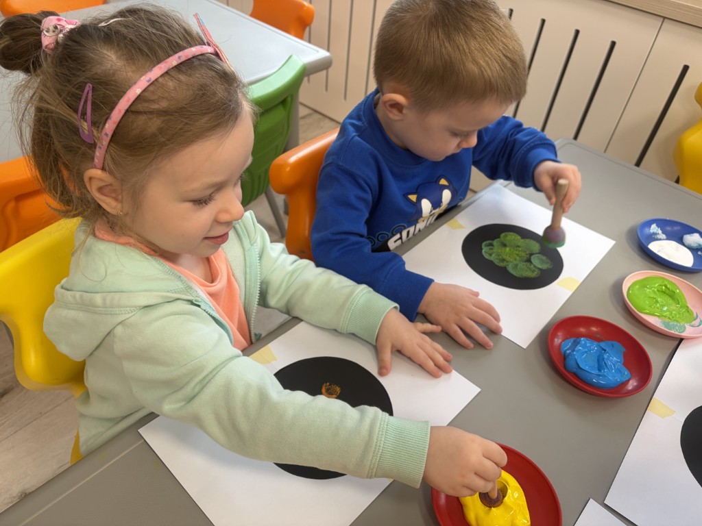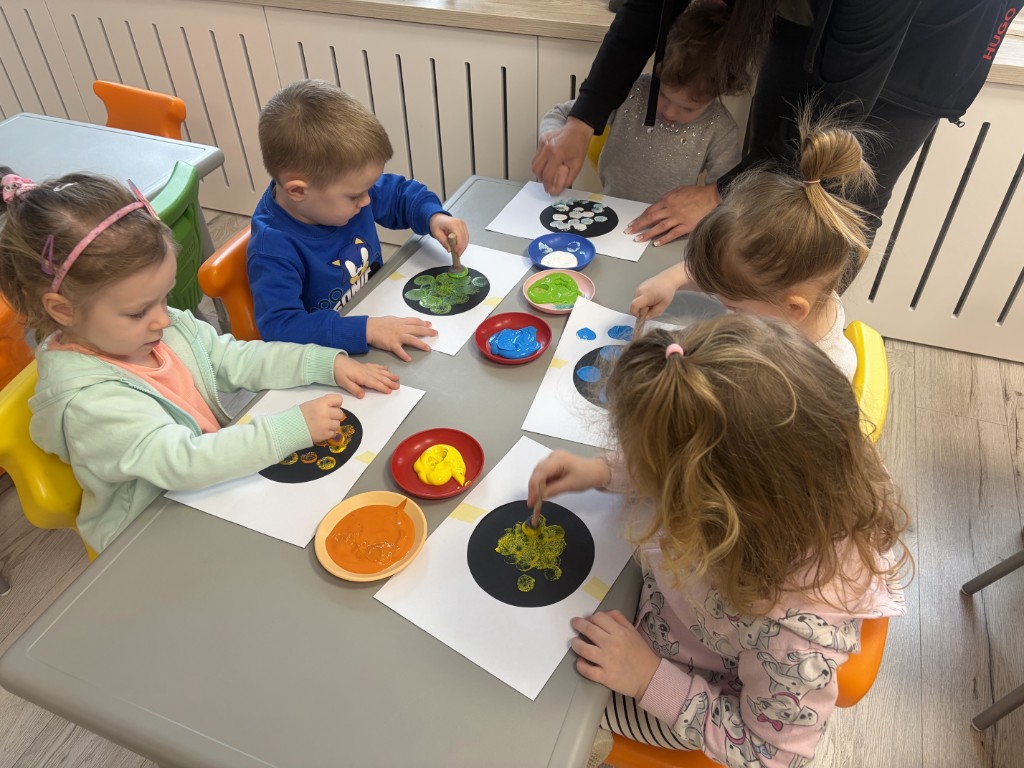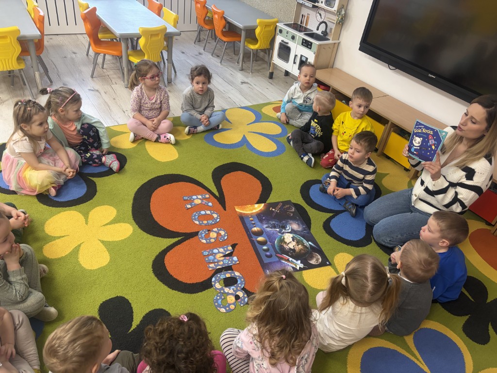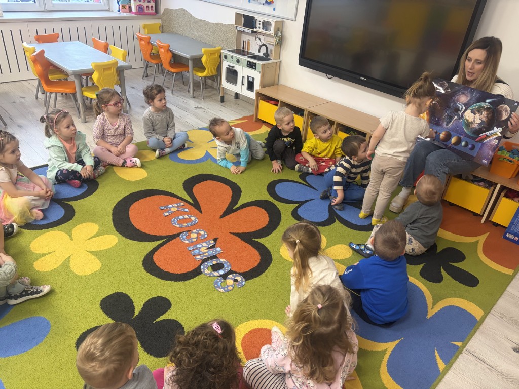.Podczas wspólnej zabawy dzieci odkrywały planety, gwiazdy i rakiety, rozwijając wyobraźnię oraz ciekawość świata.