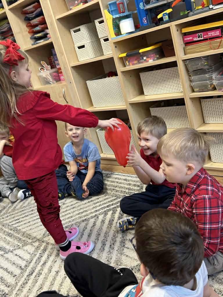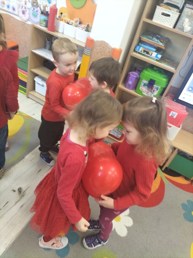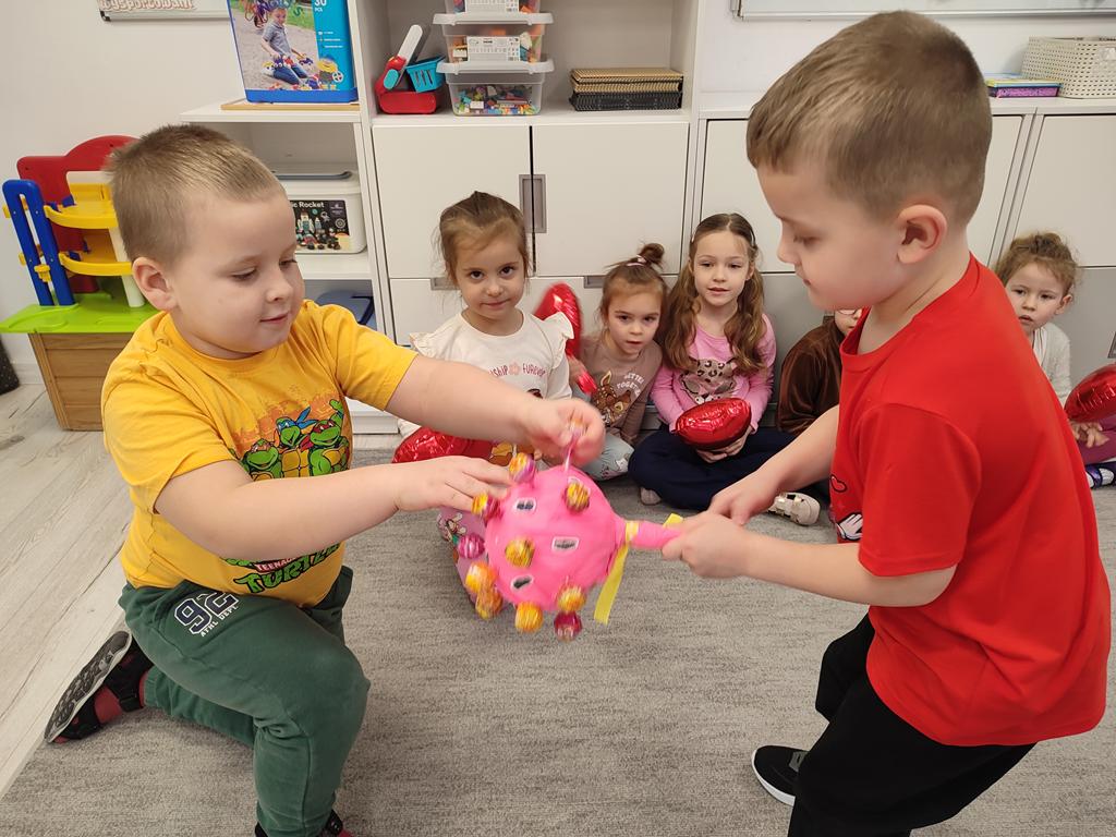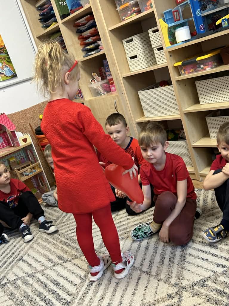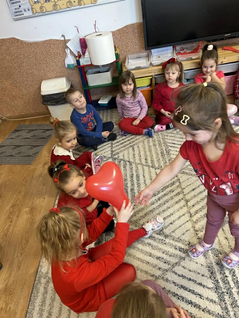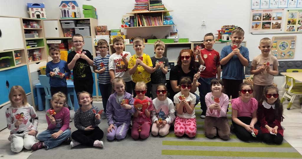Dzieci mówiły sobie miłe słowa, uczyły się okazywać sympatię i przyjaźń. Wspólnie bawiliśmy się i świętowaliśmy przy słodkim poczęstunku. Były lizaki i inne słodkości, które sprawiły wszystkim dużo radości. 🍭🍬