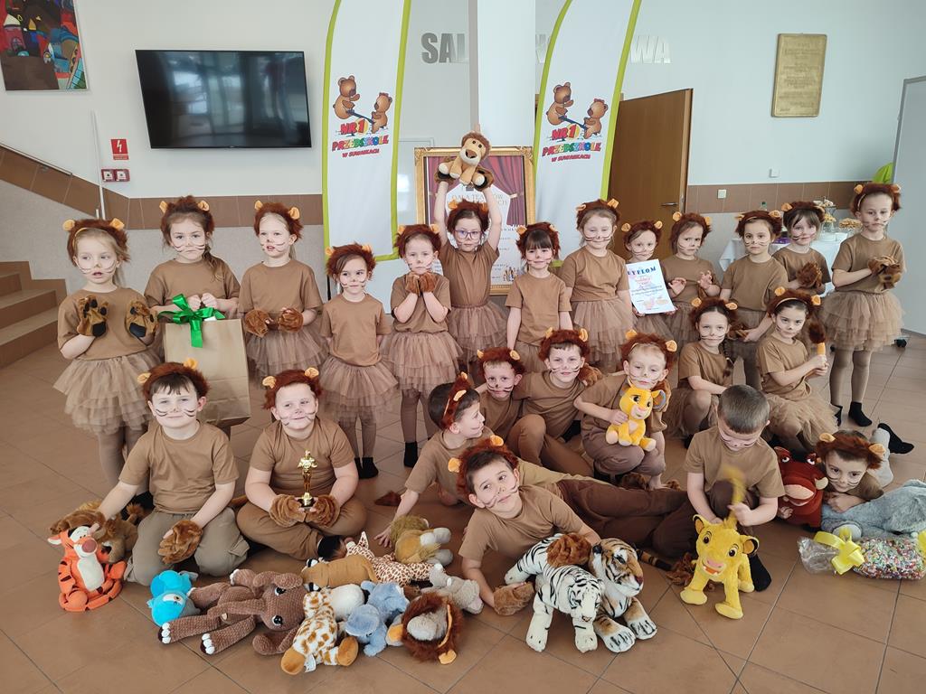 Dzieci z grupy Żółtej naszego przedszkola wystąpiły w niezwykłym widowisku muzycznym pt. „Strasznie już być tym królem chcę”, inspirowanym kultową animacją Król Lew. Mali artyści z ogromnym zaangażowaniem wcielili się w bohaterów afrykańskiej sawanny, prezentując swoje talenty wokalne, taneczne i aktorskie.
