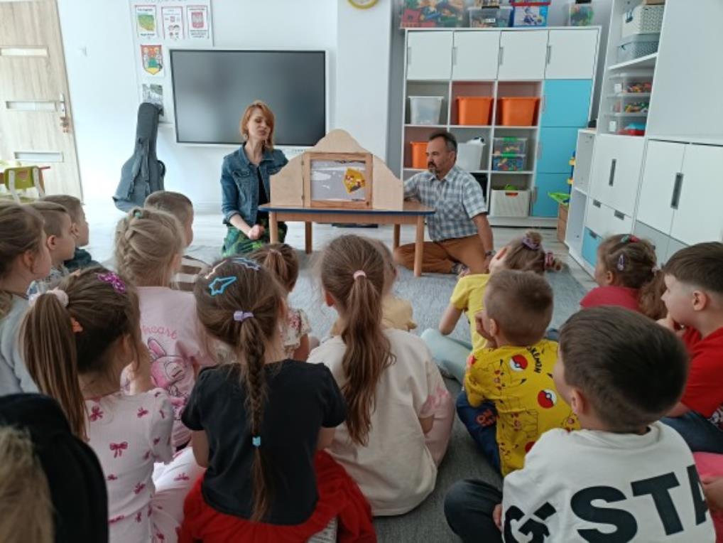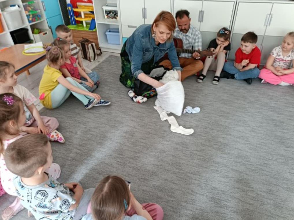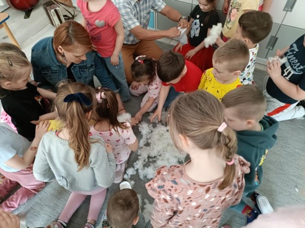 Podczas wspólnych działań Grupy Żółtej z pracownikami Biblioteki pojawiła się tajemnicza postać – kim jest „kemushi”? Dochodzenie zakończyło się sukcesem, a wszystkie zagadki zostały rozwiązane w atmosferze miłej, muzycznej oprawy. I udało się zrobić gąsienniczki, które stały się naszymi grupowymi maskotkami.