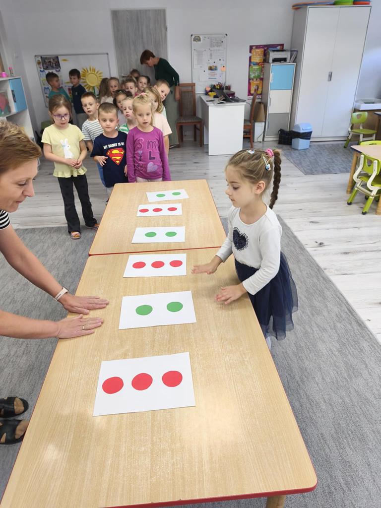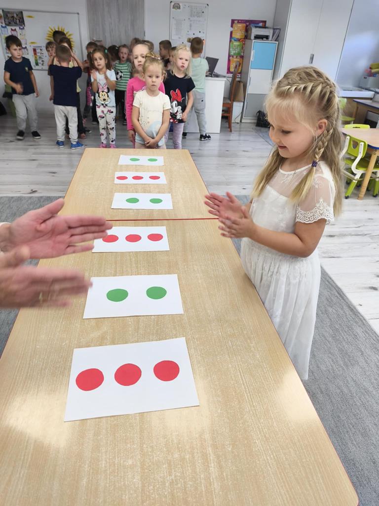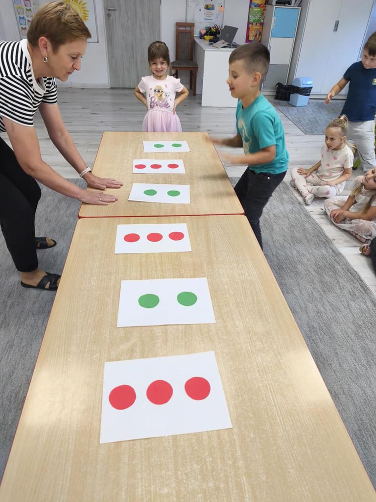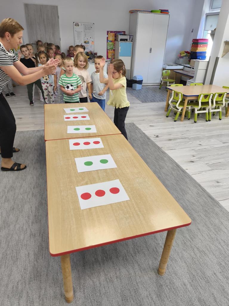 Podczas kontynuacji zajęć w grupie Żółtej rozwijając ćwiczenia oddechowe i fonacyjne (zabawy głosem), wprowadzamy elementy rytmiki (marsz, klaskanie, grę na instrumentach), a także zabawy artykulacyjne z rytmem. Grupa powtarza sylaby i wyrazy w różnym tempie, reaguje ruchem na muzykę oraz improwizuje krótkie rytmy. Połączenie ruchu, muzyki i mowy w formie krótkich, dynamicznych gier i piosenek, wspierają rozwój mowy, słuchu i koordynacji.