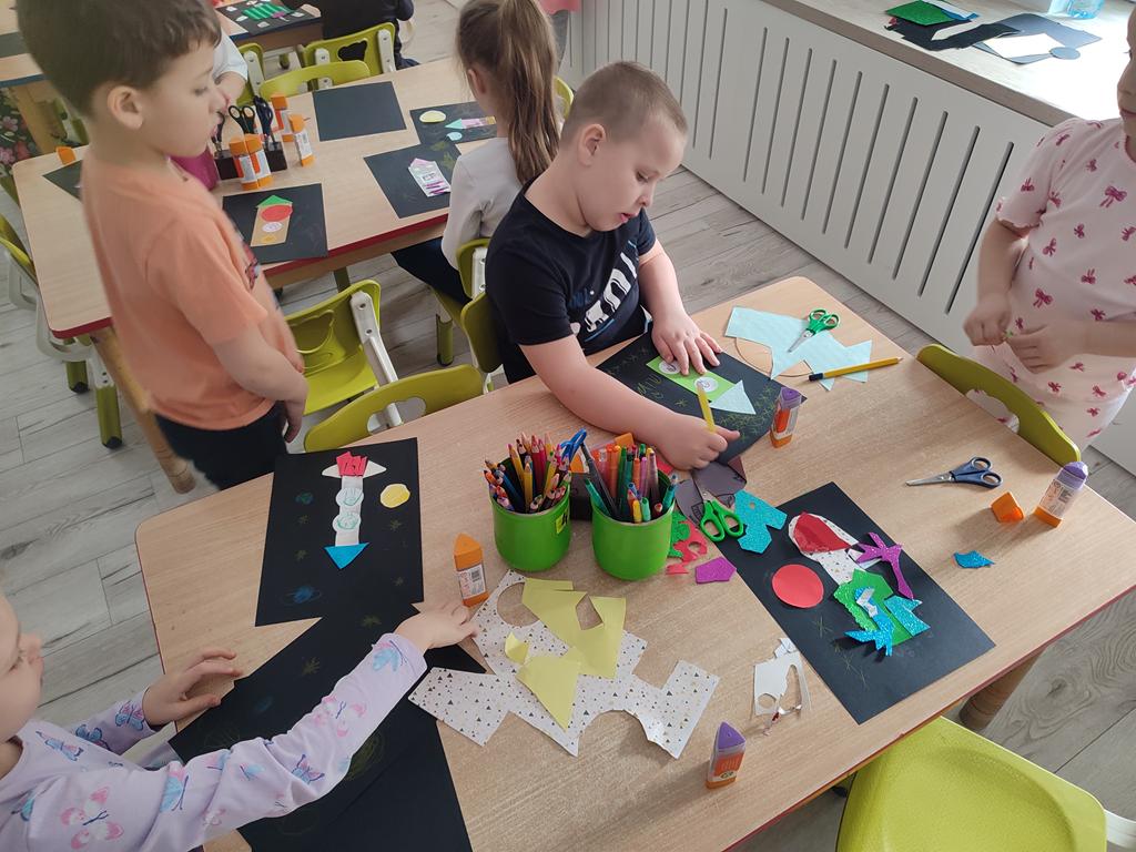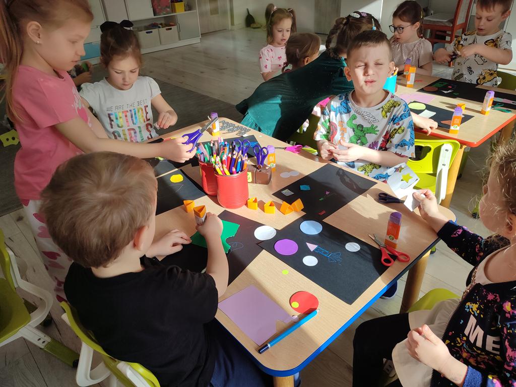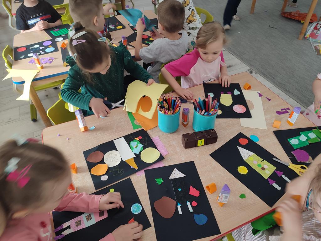 Grupa Żółta w tym tygodniu była małymi badaczami pełnymi ciekawości świata. Każdego dnia wyruszaliśmy w niezwykłe podróże – poznawaliśmyy planety, gwiazdy i tajemnice wszechświata, rozwijaliśmy przy tym wyobraźnię, kreatywność i chęć odkrywania. Uczyliśmy się poprzez zabawę, współpracę i eksperymentowanie, bo dla nas nauka to prawdziwa przygoda!