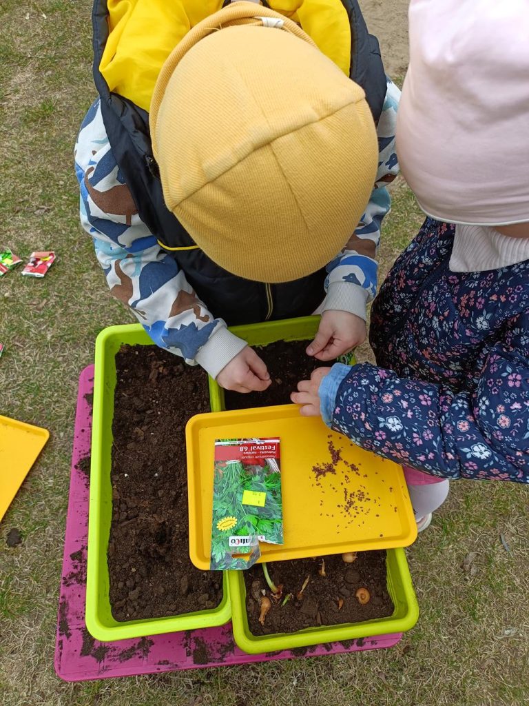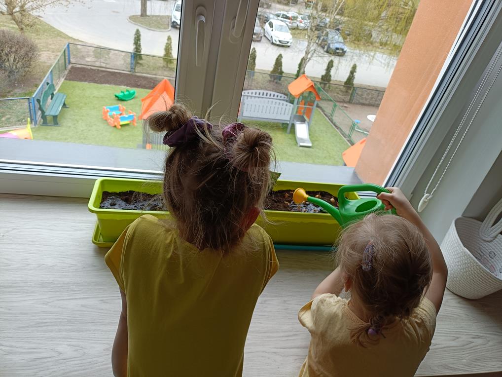 Grupa Żółta aktywnie zakłada ogródek na parapecie. W ramach zajęć zostały zrealizowane następujące działania: