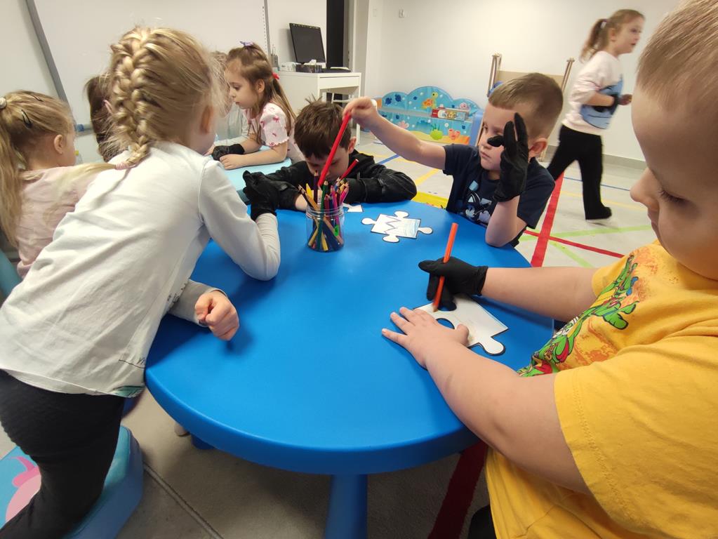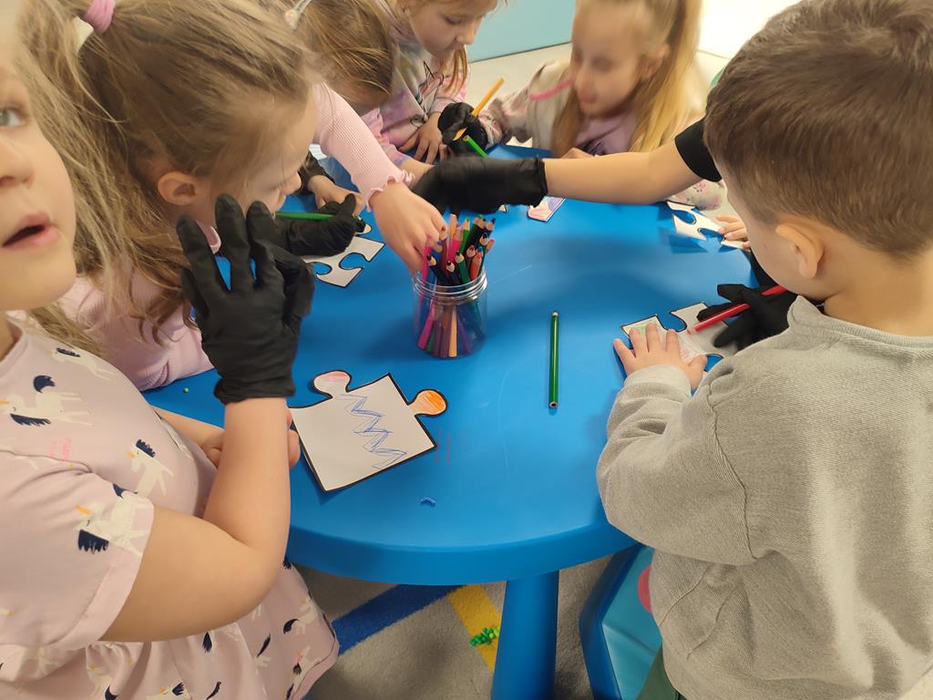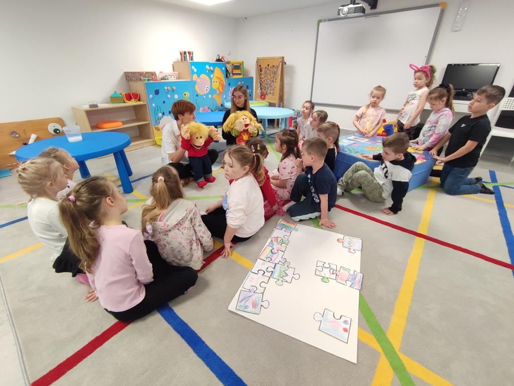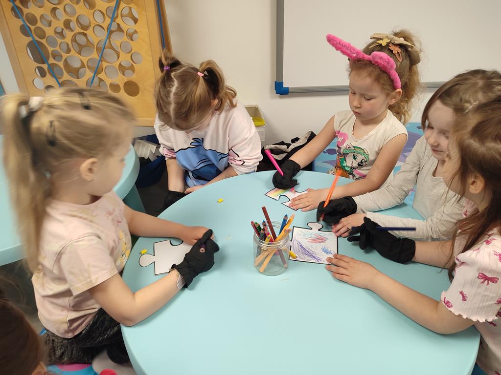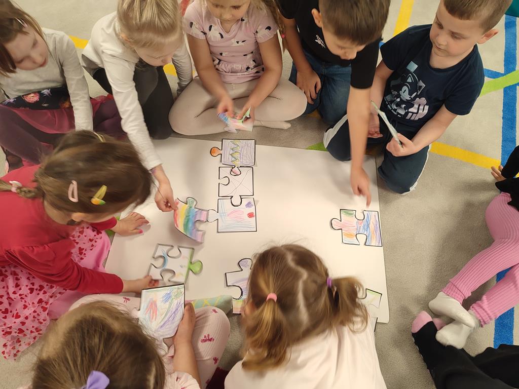 Puzzle przyjaźni – zajęcia terapeutyczne 8 kwietnia, 2026 Podczas zajęć terapeutycznych „Puzzle przyjaźni” dzieci rozwijały umiejętności akceptacji różnorodności oraz rozumienia innych. Dzięki zmysłowym doświadczeniom lepiej poznawały potrzeby i emocje rówieśników, ucząc się empatii i współpracy.