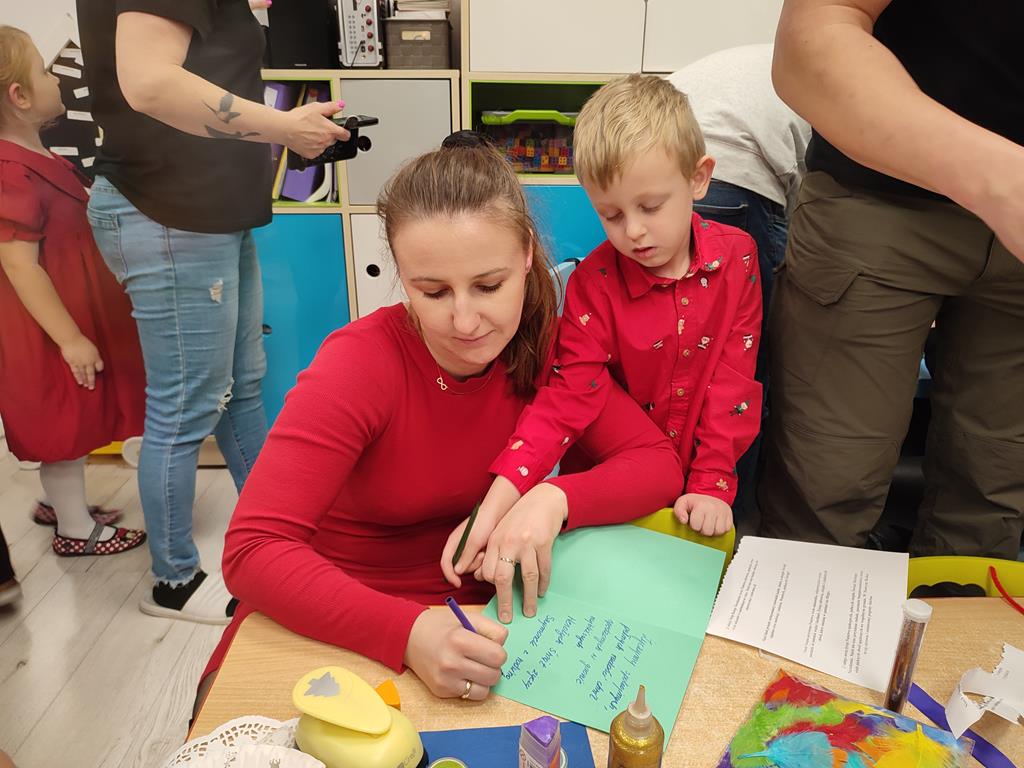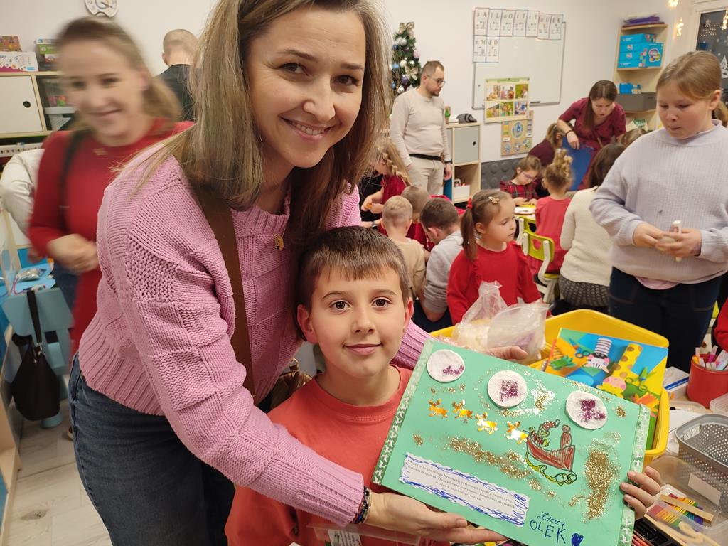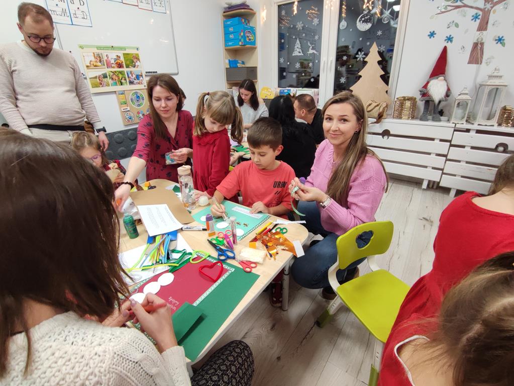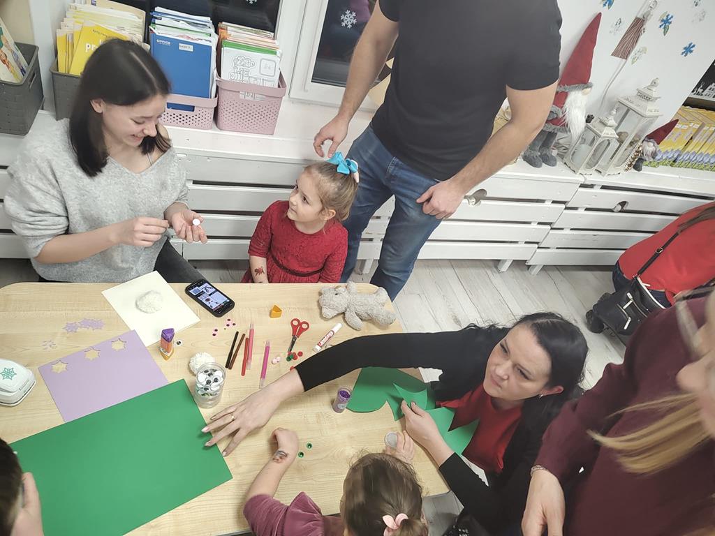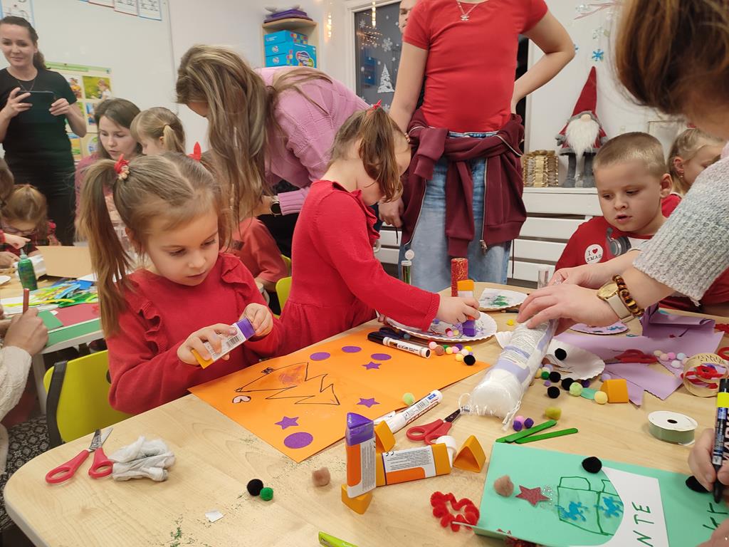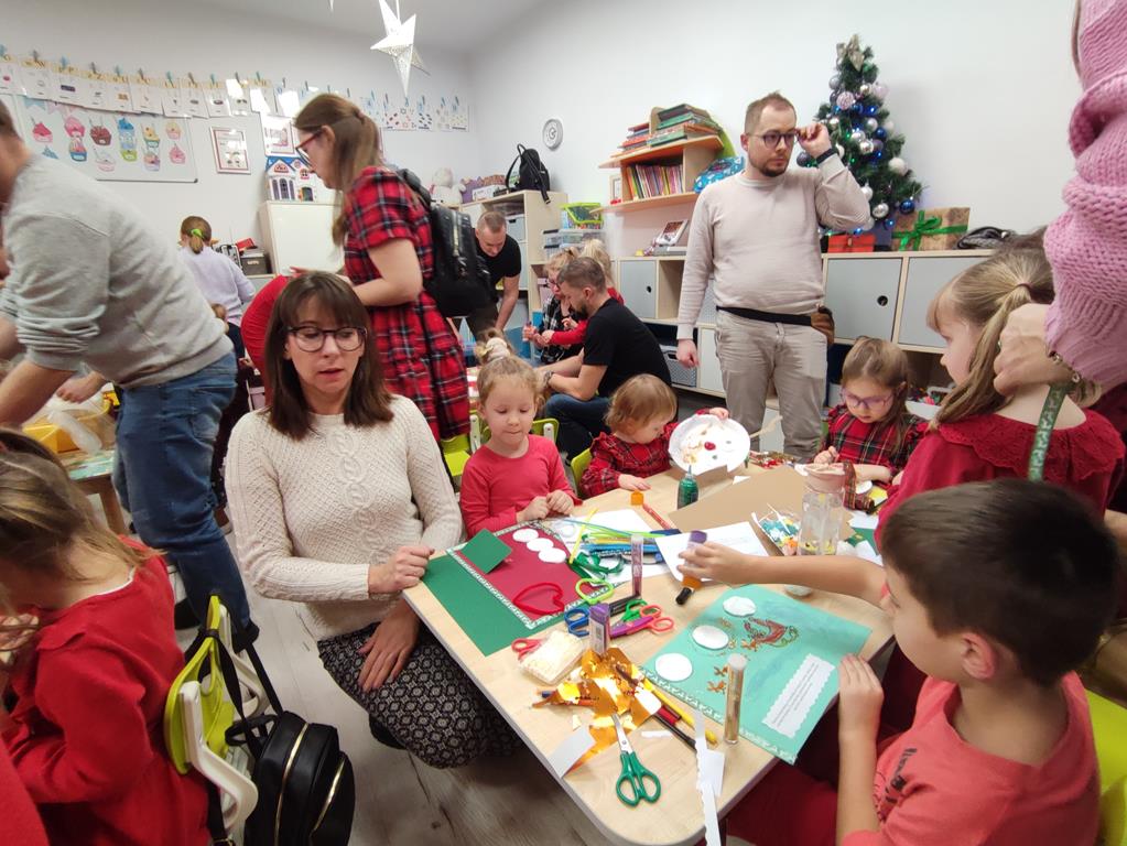 Dzisiejszego popołudnia Żółta zaśpiewała, zatańczyła i zagrała, by wprowadzić wszystkich zgromadzonych gości w świąteczny klimat. A później w sali obok wspólnie z Rodzicami na warsztatach zrobiła piękne kartki pracownikom i podopiecznym suwalskiego Hospicjum.
